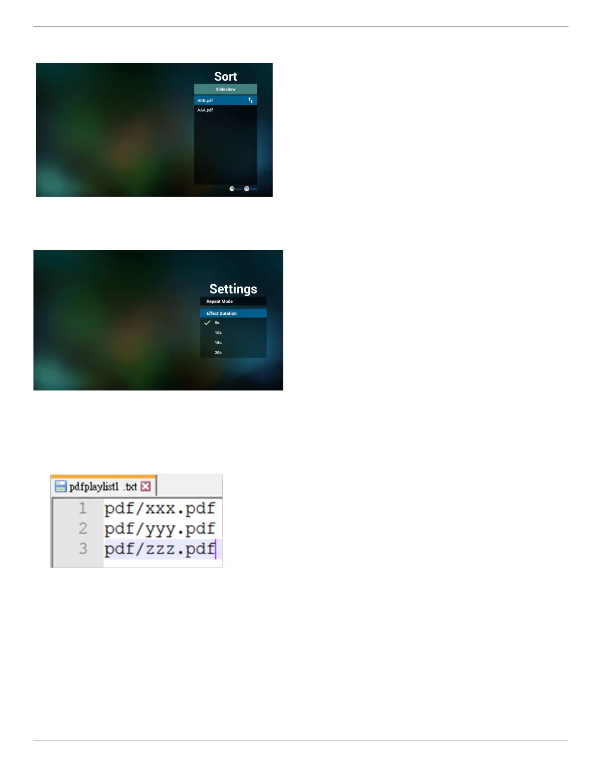 Ex. /storage/emulated/legacy/philips/pdfplaylist1.txt