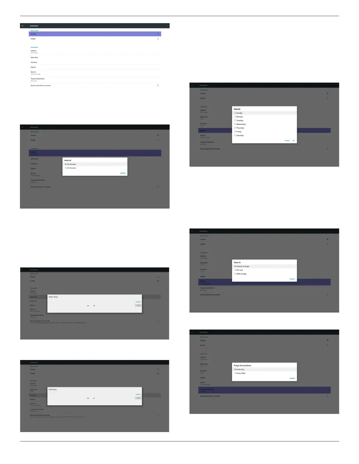 Set screenshot repeat cycle. User can choose screenshot time frame.