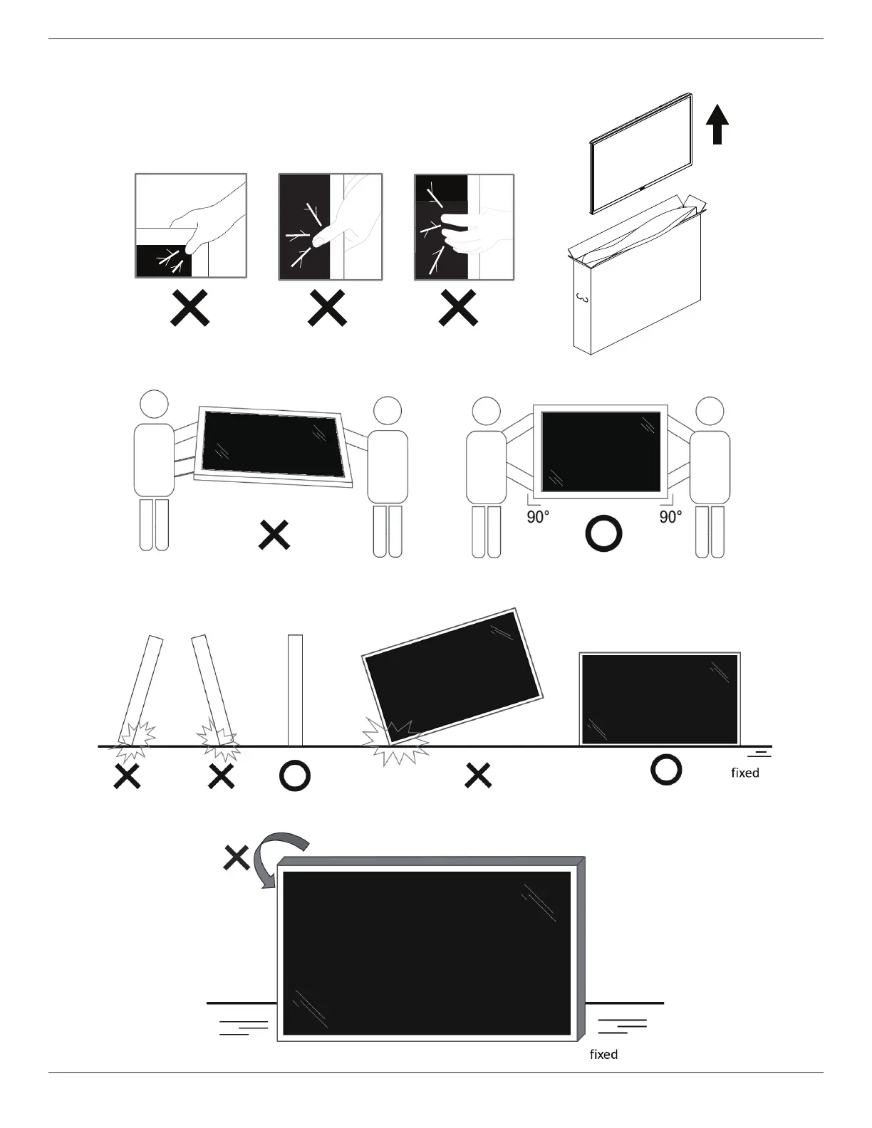 • Place the display vertically and its weight should spread evenly on the surface.