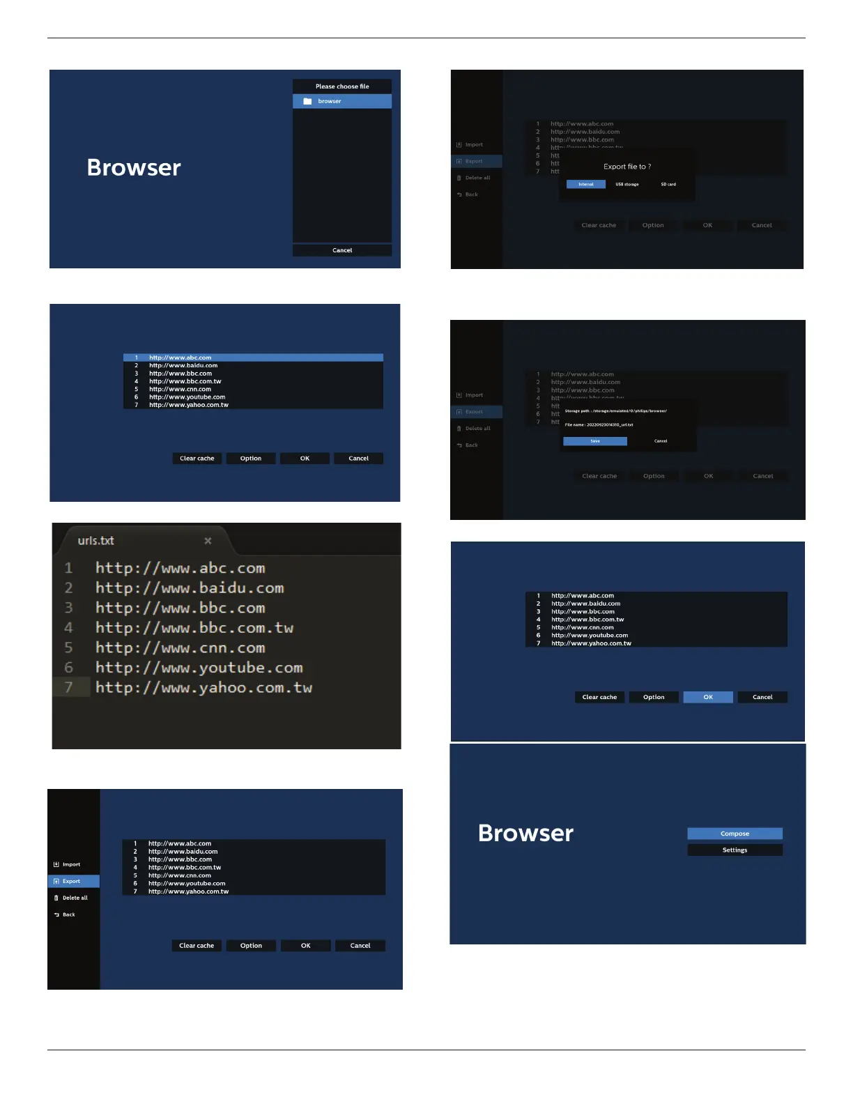 • Import the browser le and the URL will be listed on the