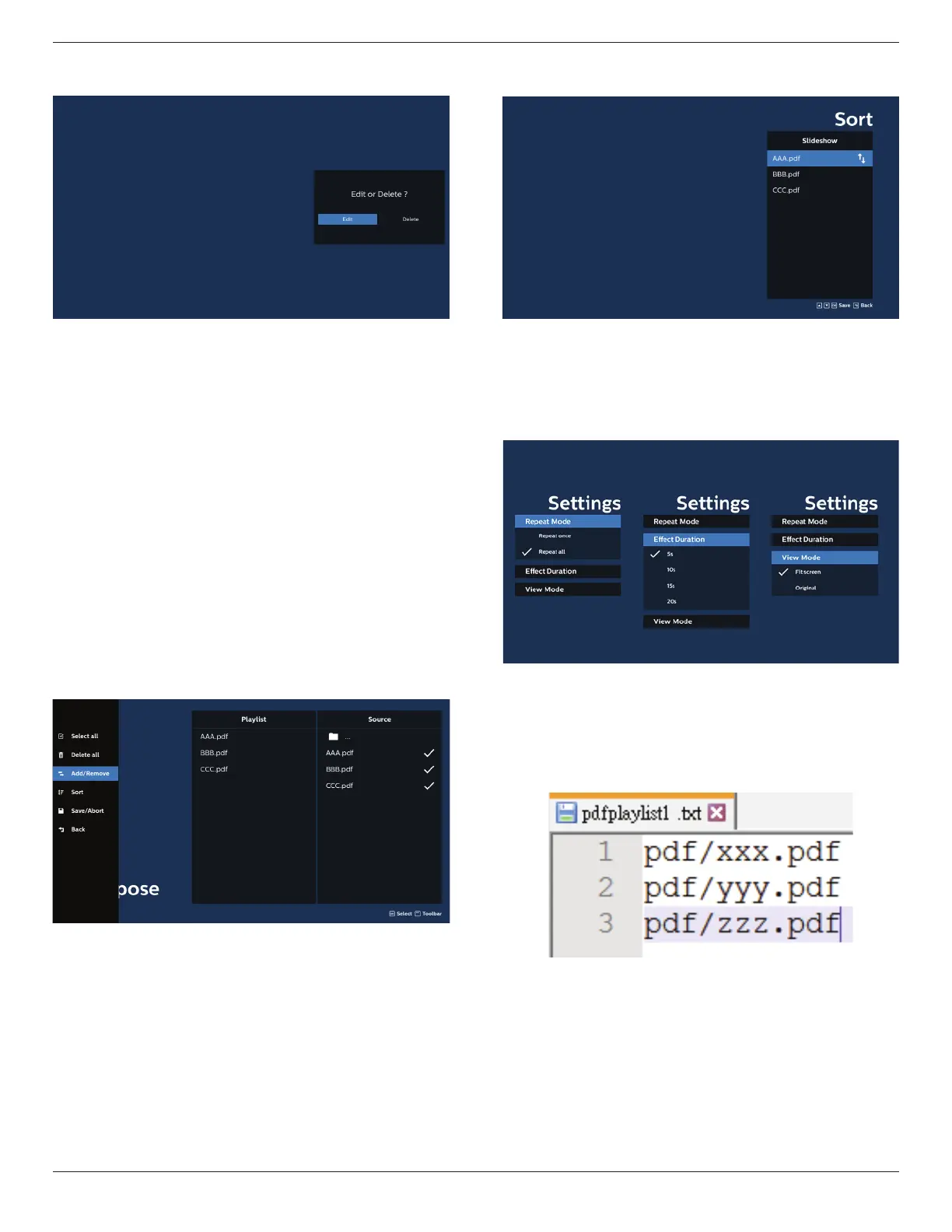 Ex. /storage/emulated/legacy/philips/pdfplaylist1.txt