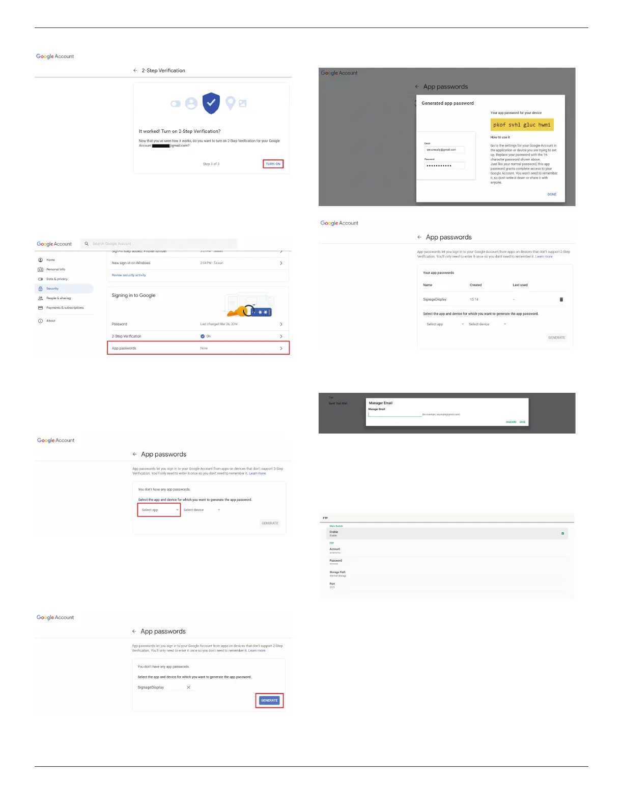 Settings -> Signage Display -> Server Settings -> FTP