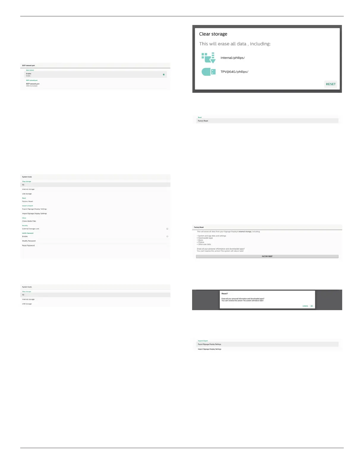 Settings -> Signage Display -> System Tools -> Clear Storage