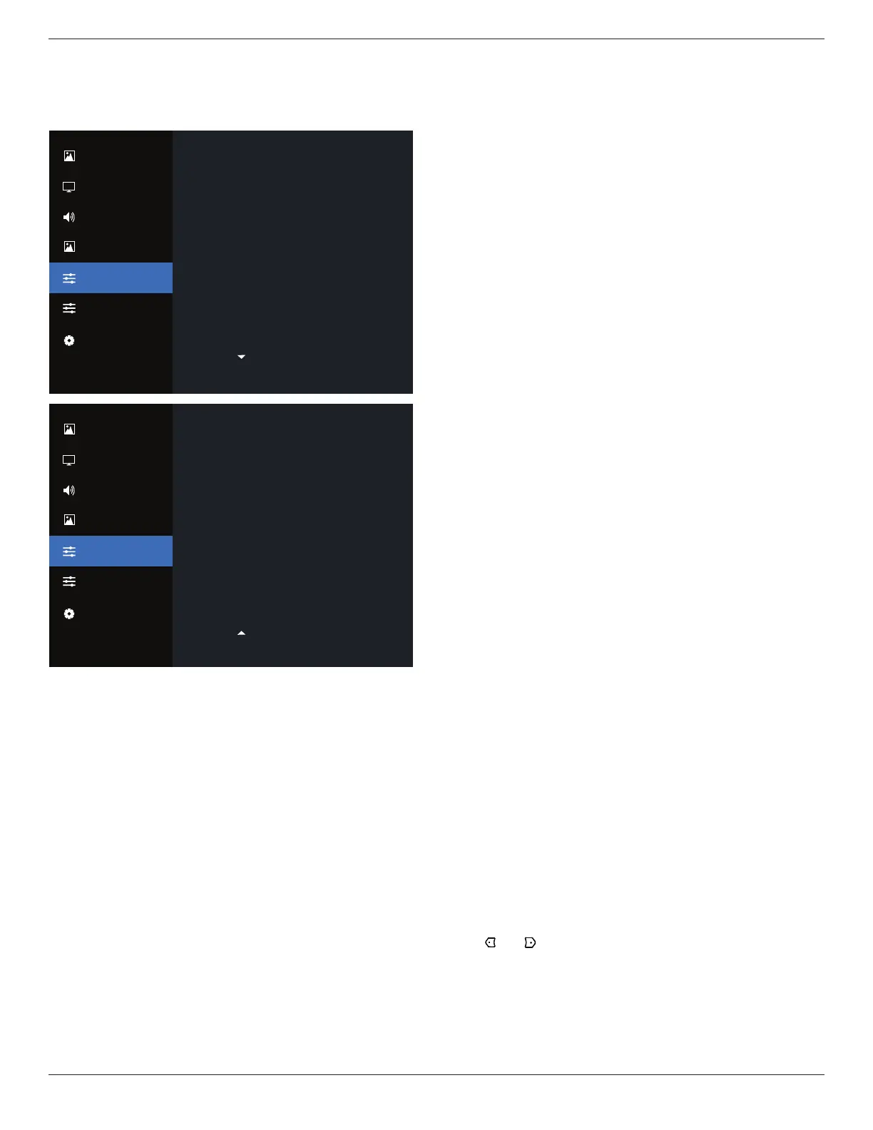 Reset all settings in the OSD menu of {Picture}, {Screen}, {Audio},
