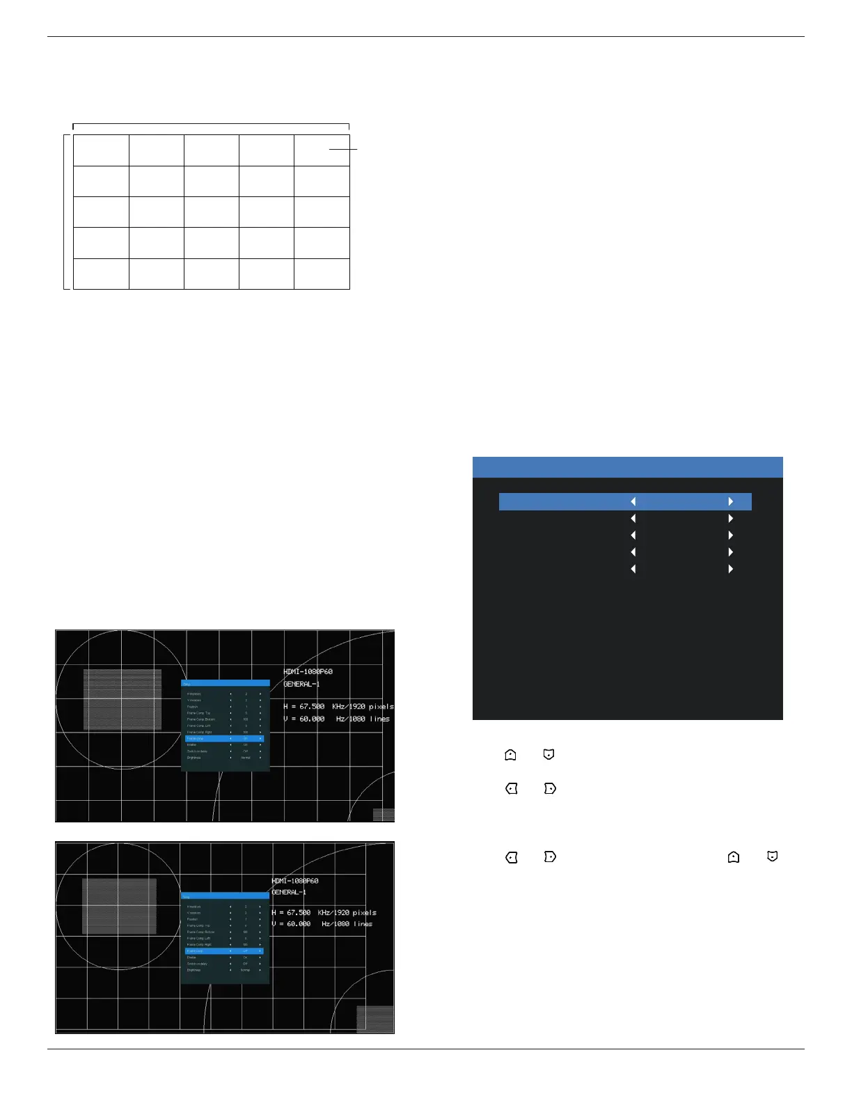 • {Frame comp. Bottom} - set the pixel numbers of bottom