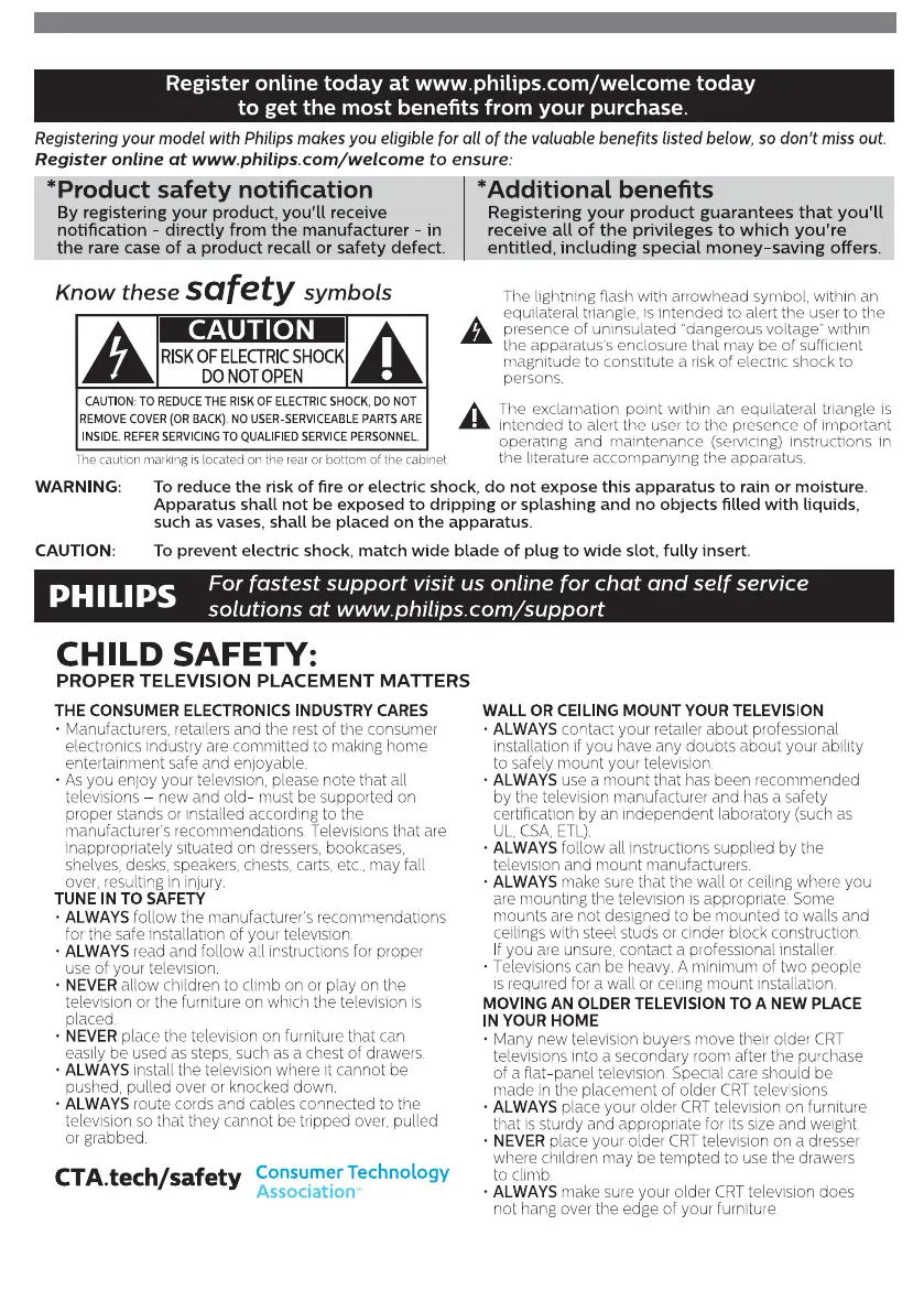 To obtain a more detailed electronic copy of this User manual or to access live chat support, go to www.philips.com/support