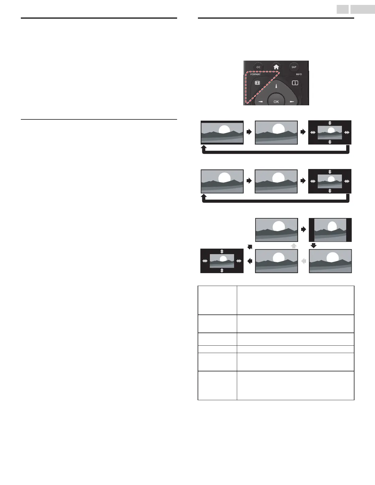 Press FORMAT repeatedly to switch the TV aspect ratio.