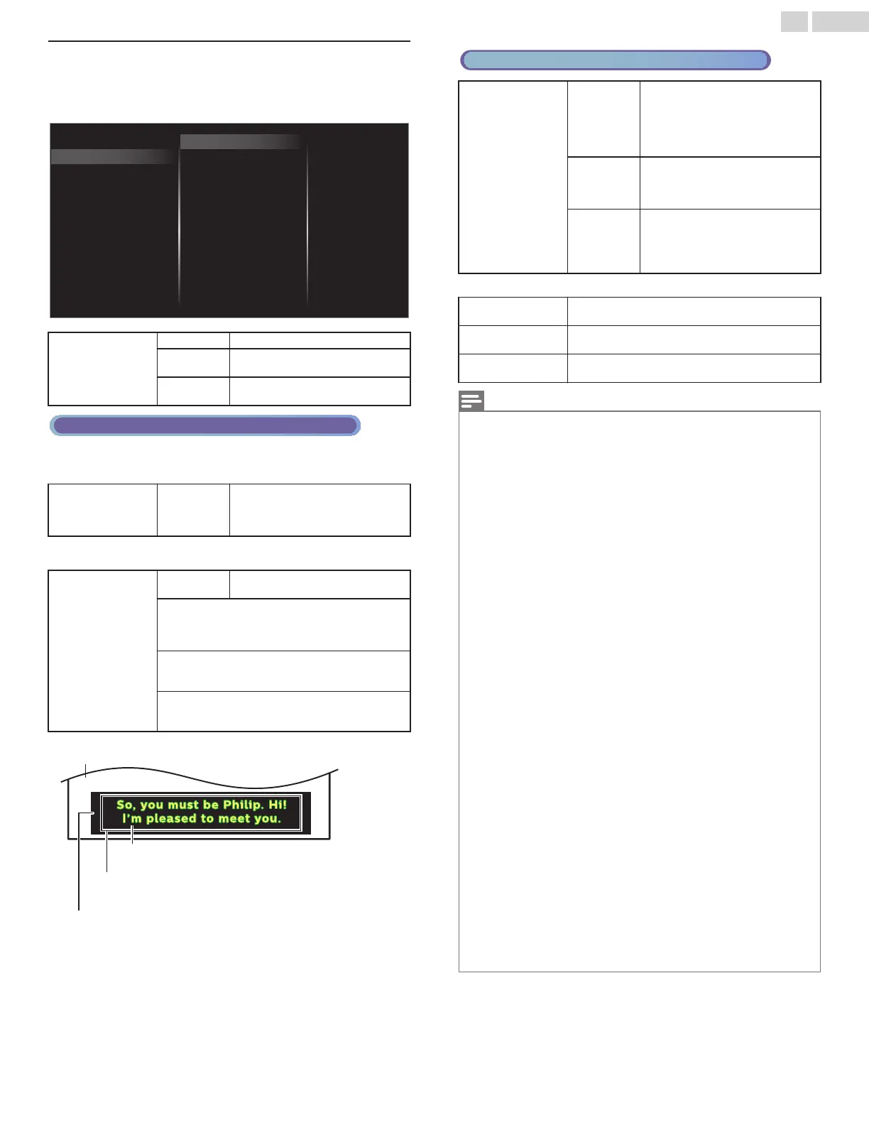 Closed captioning service may not be controlled by this unit’s menu options