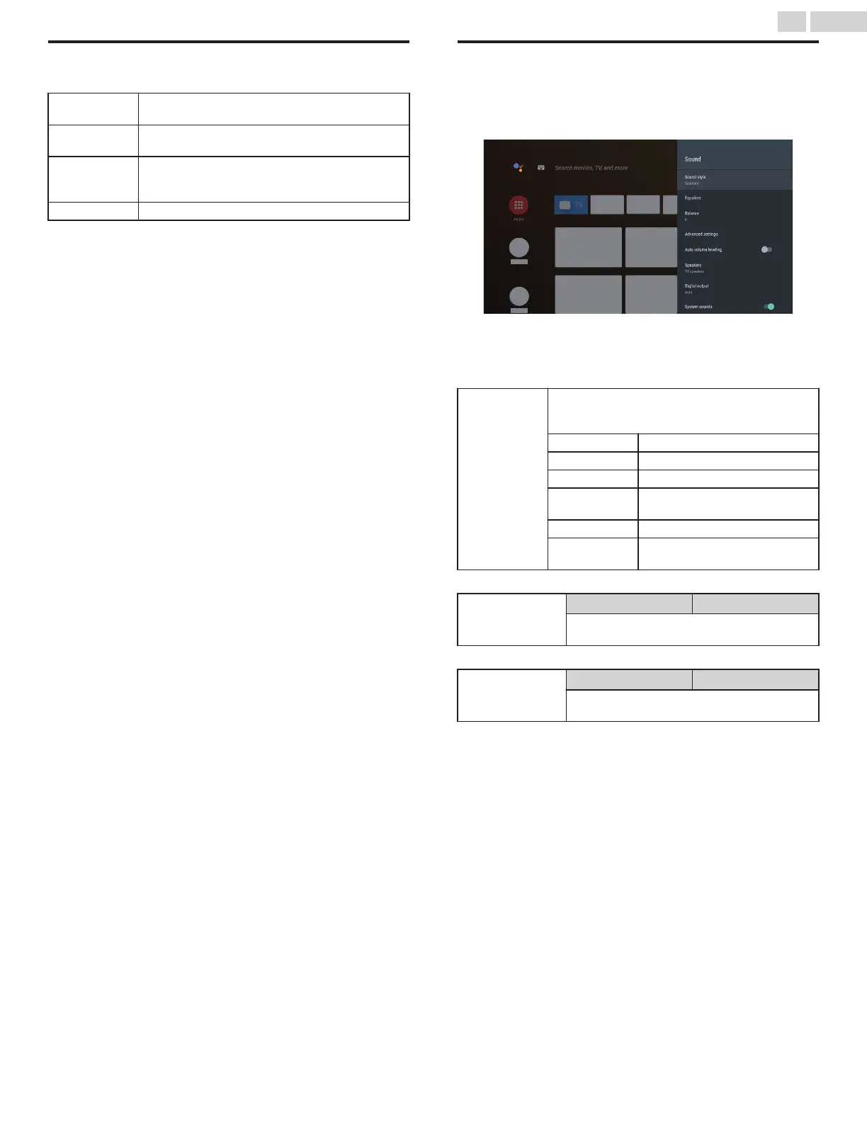 format of the broadcasting, some sound settings are not available.