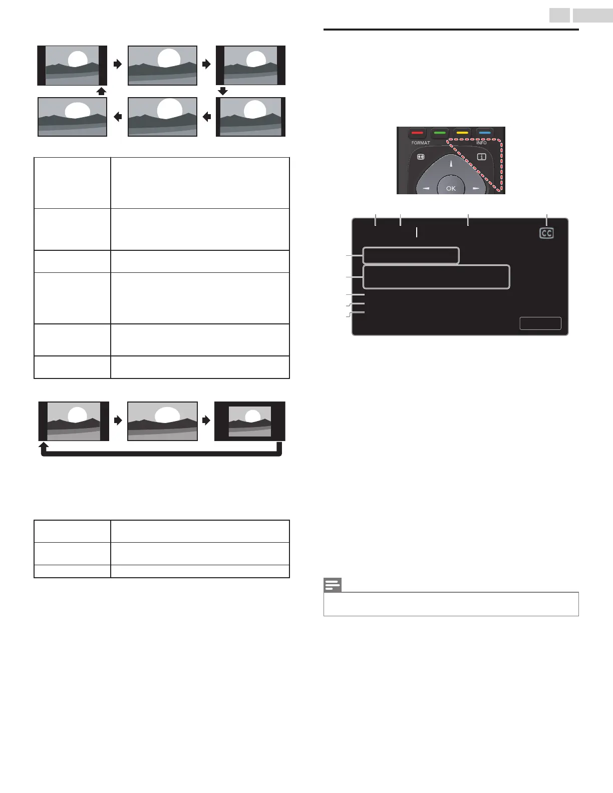 Displays a 4:3 picture at a 14:9 size; the picture is