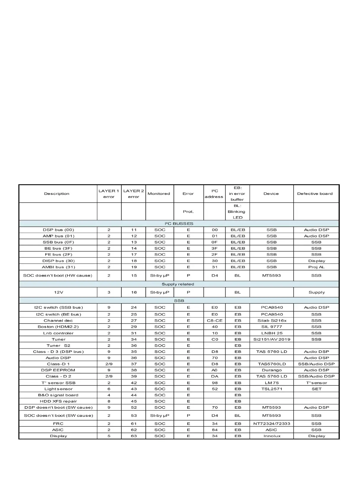 In this chassis only “layer 2” error codes are available and point to problems on the SSB. They are triggered by LED blinking