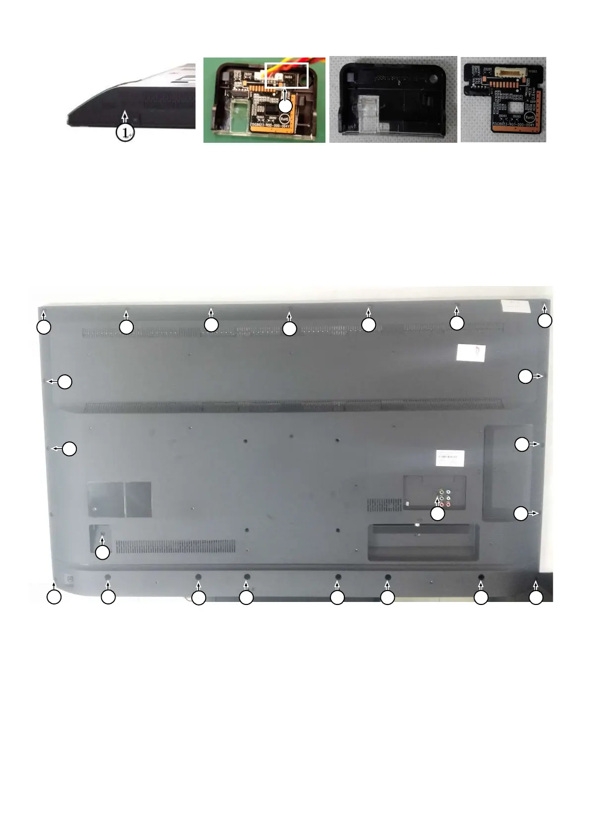 1. Remove fixation screws [2] and [3] that secure the back cover.(6102 series)