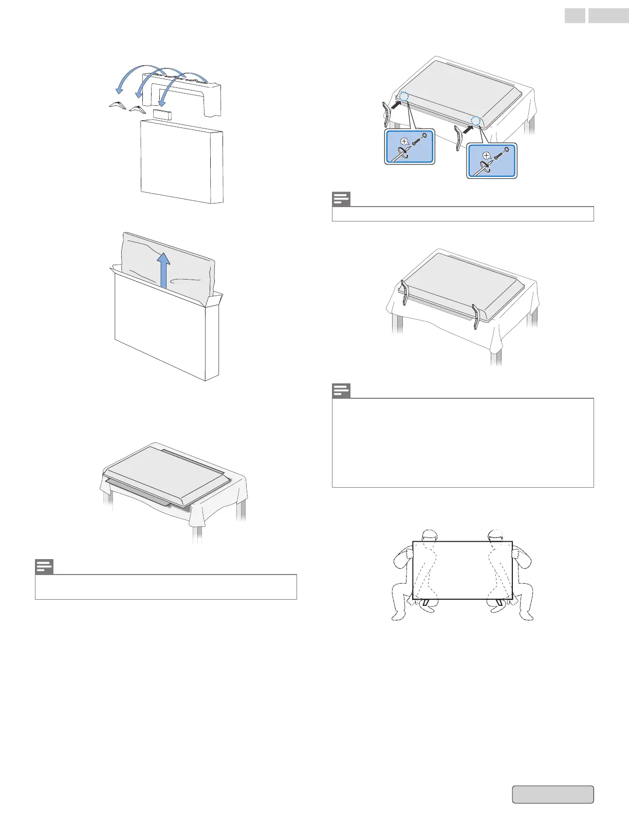 to the TV screen. Hold both sides of the TV set to place on