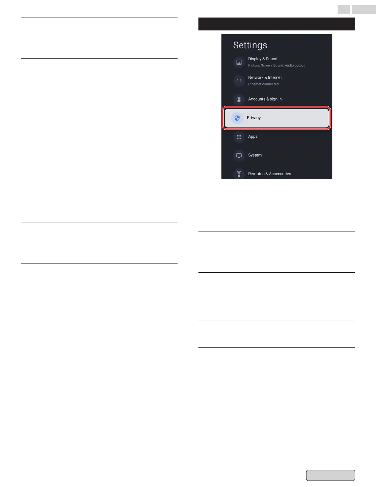 This section is privacy settings of your TV, Google account and