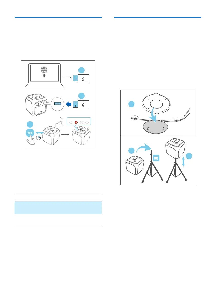 3 Adjust the speaker tripod to the
