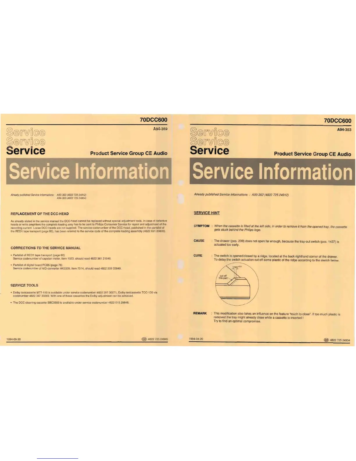 recording current. Loose DCC-heads are not supplied. The service codenumber of the DCC-head, published