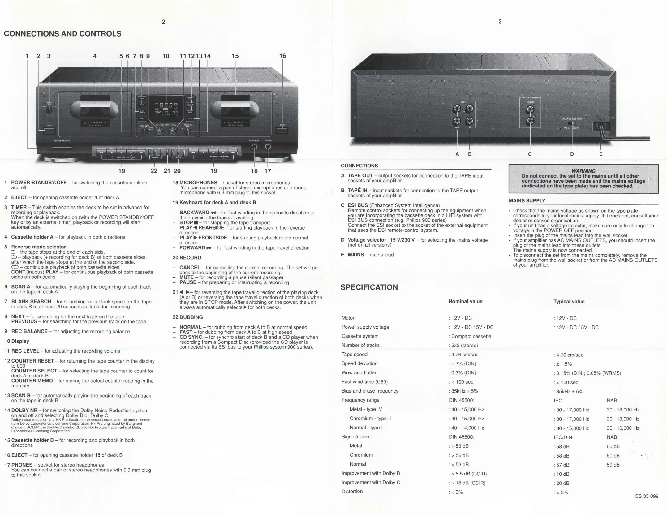 Philips 70FC940 - Connections and Controls; Front Panel Controls; Rear and Side Connections
