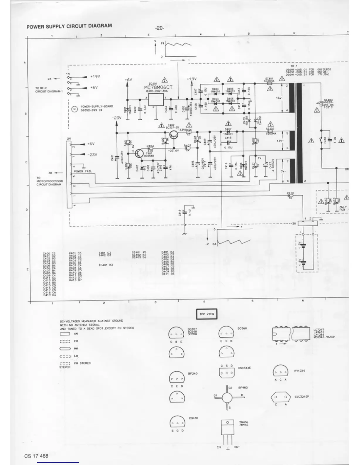 Philips 70FT880 - Power Supply Circuit Diagram; Power Supply Voltages and Components