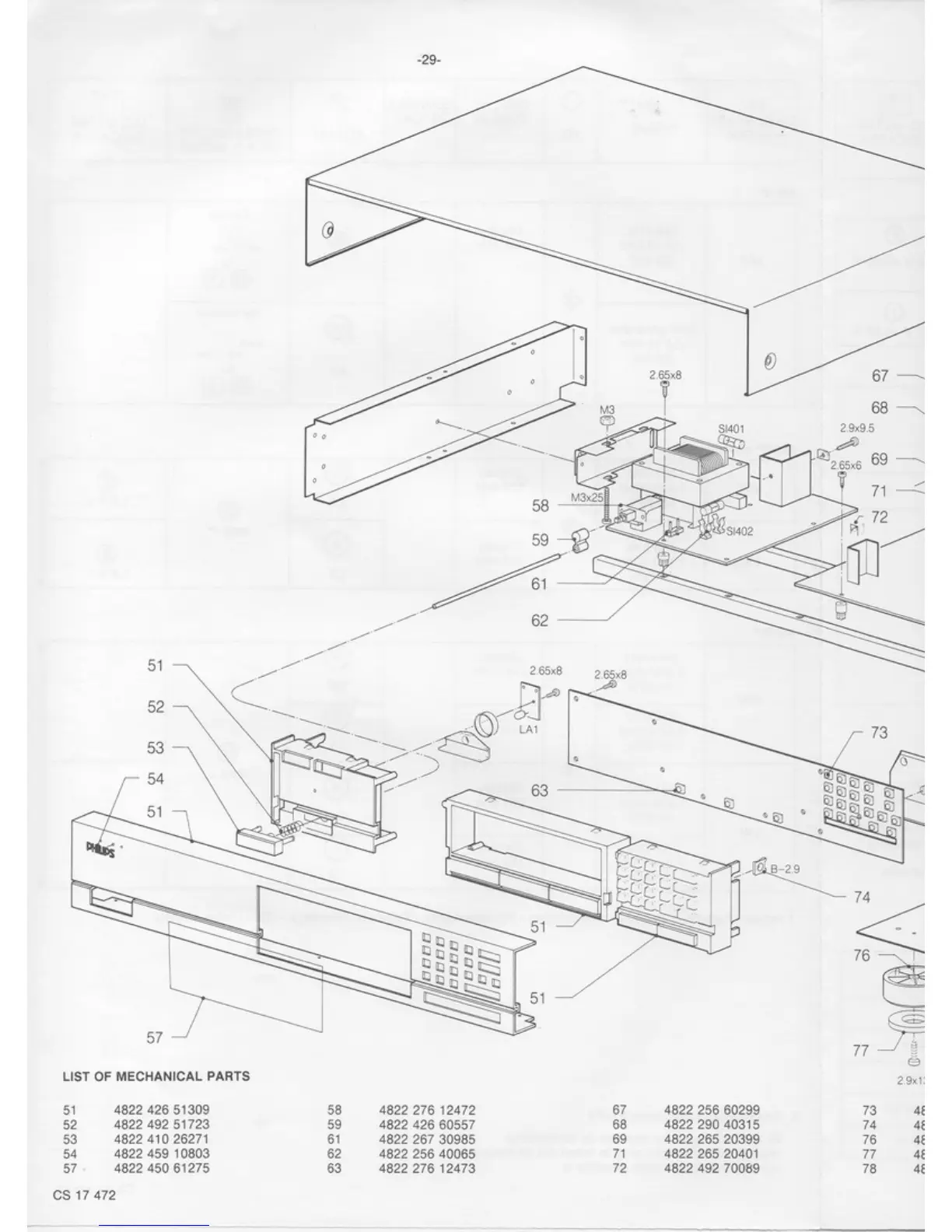 Philips 70FT880 - Mechanical Parts List; Chassis and Front Panel Parts; Internal Mechanical Parts