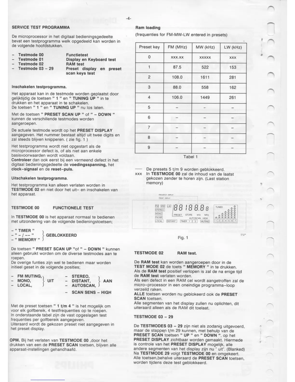 Philips 70FT880 - Service Test Programs; Test Mode Descriptions