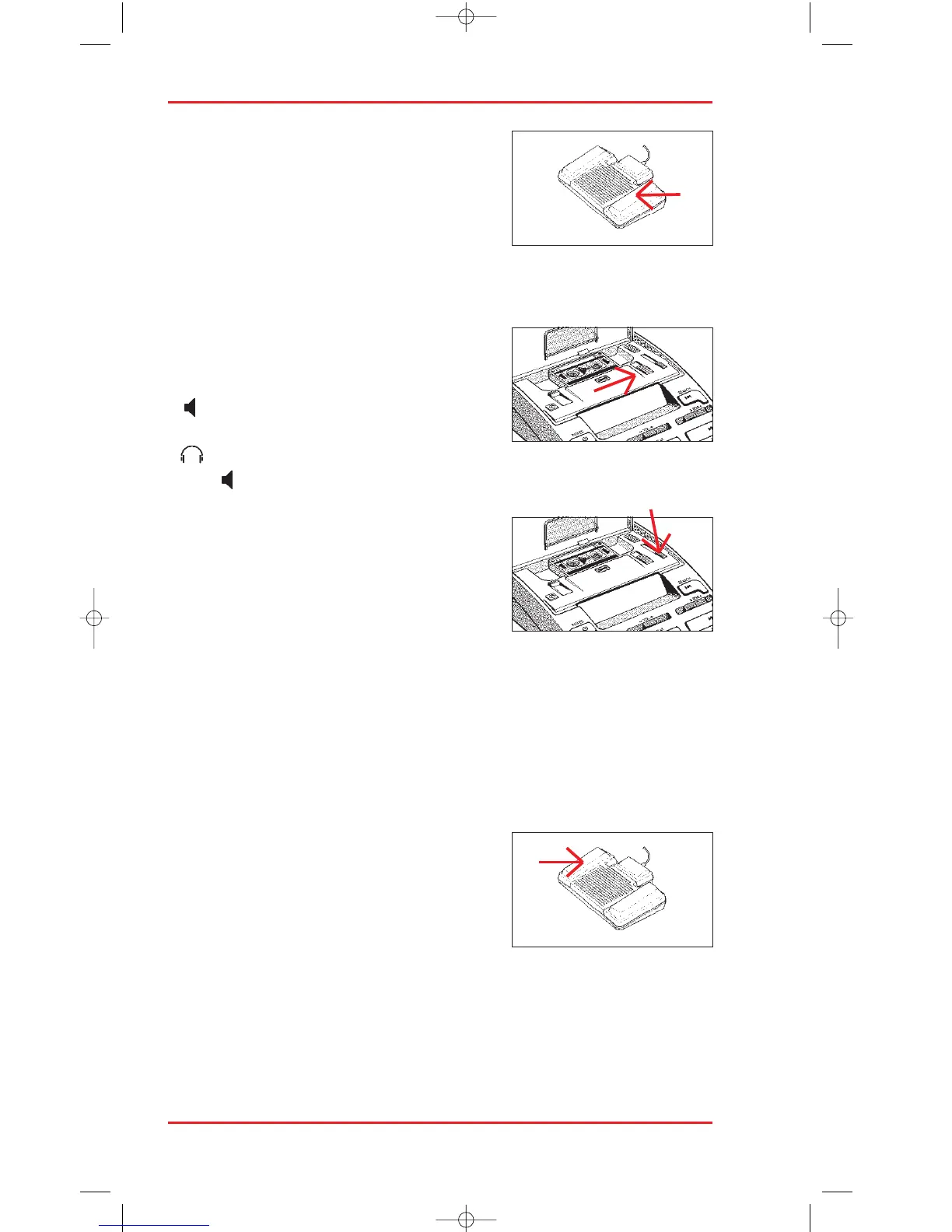 rewinds for as long as you keep this pedal depressed. As the tape rewinds you
