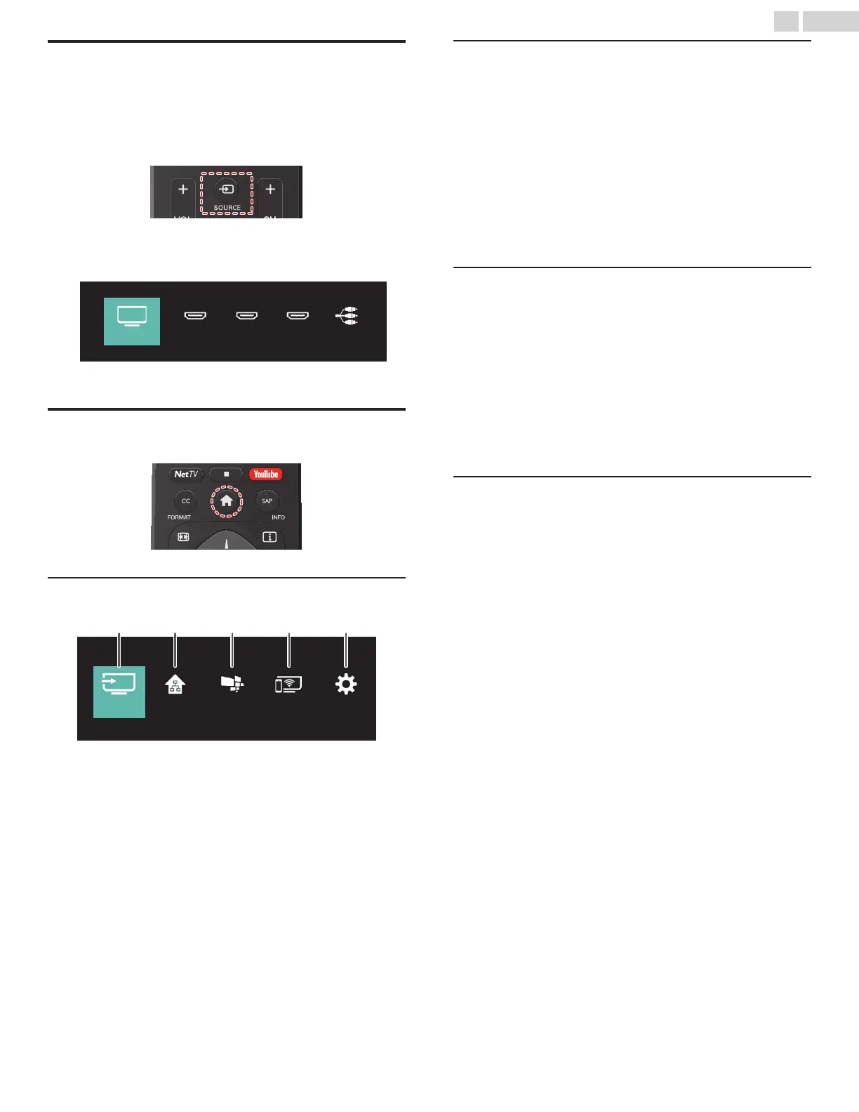 Source : To select TV source or connected