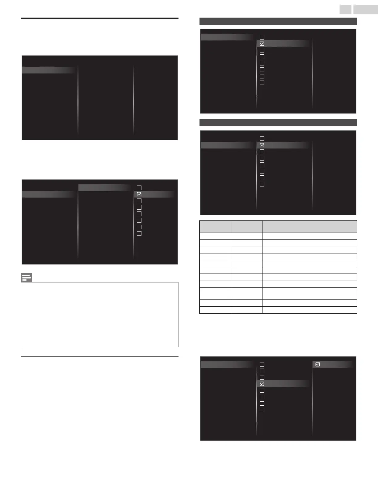 See the following description for setting each item.