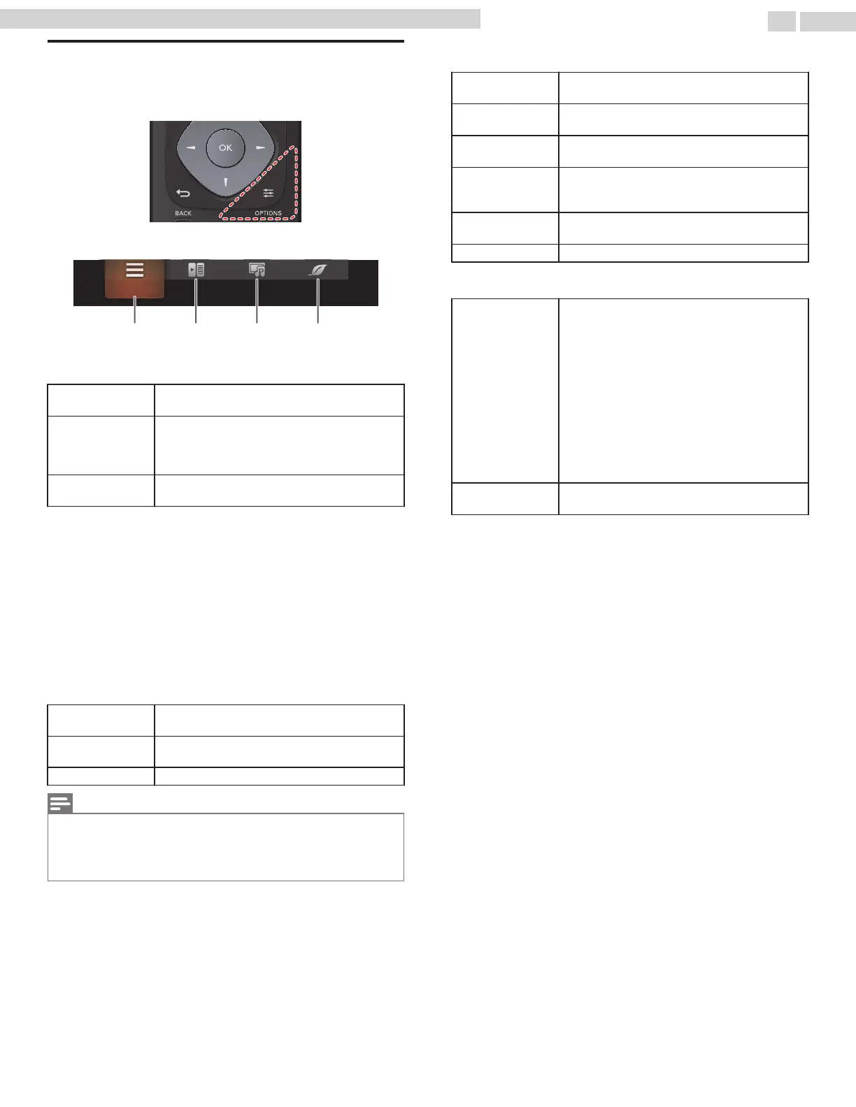 You can access to some TV settings directly by using OPTIONS.