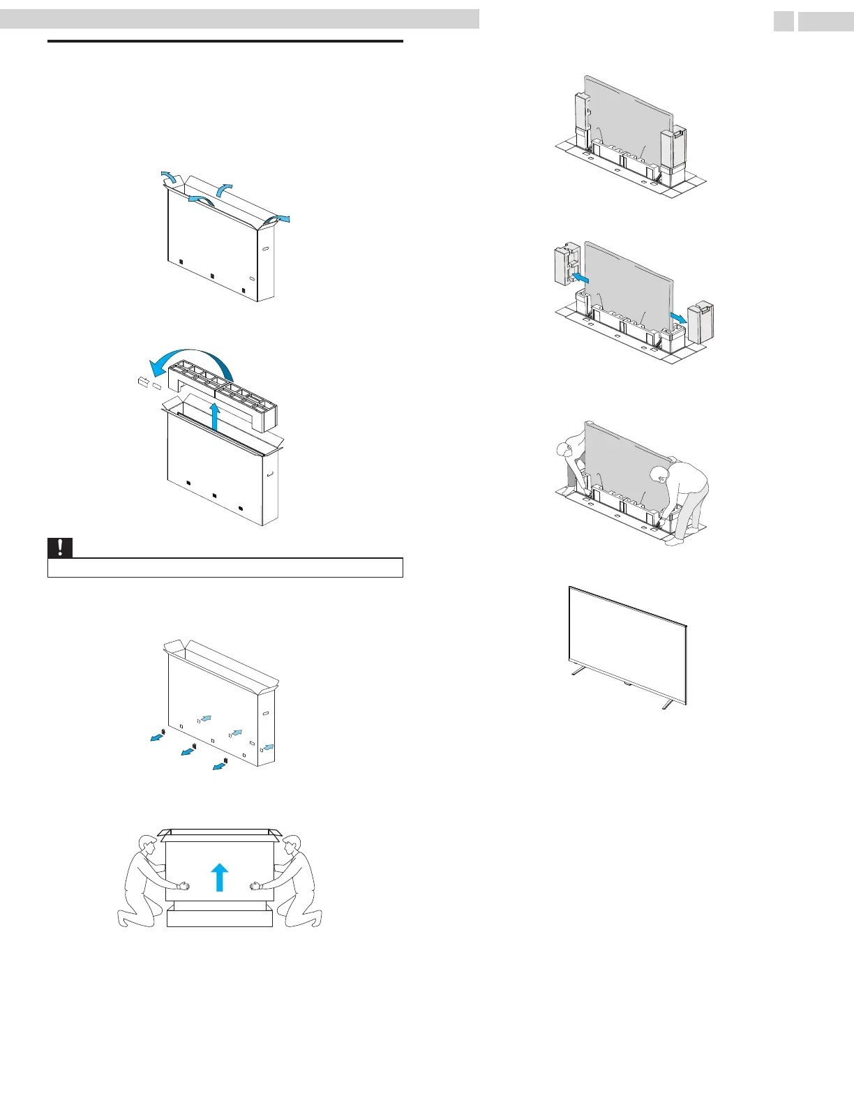 It is recommended that two or more people remove the TV set from the