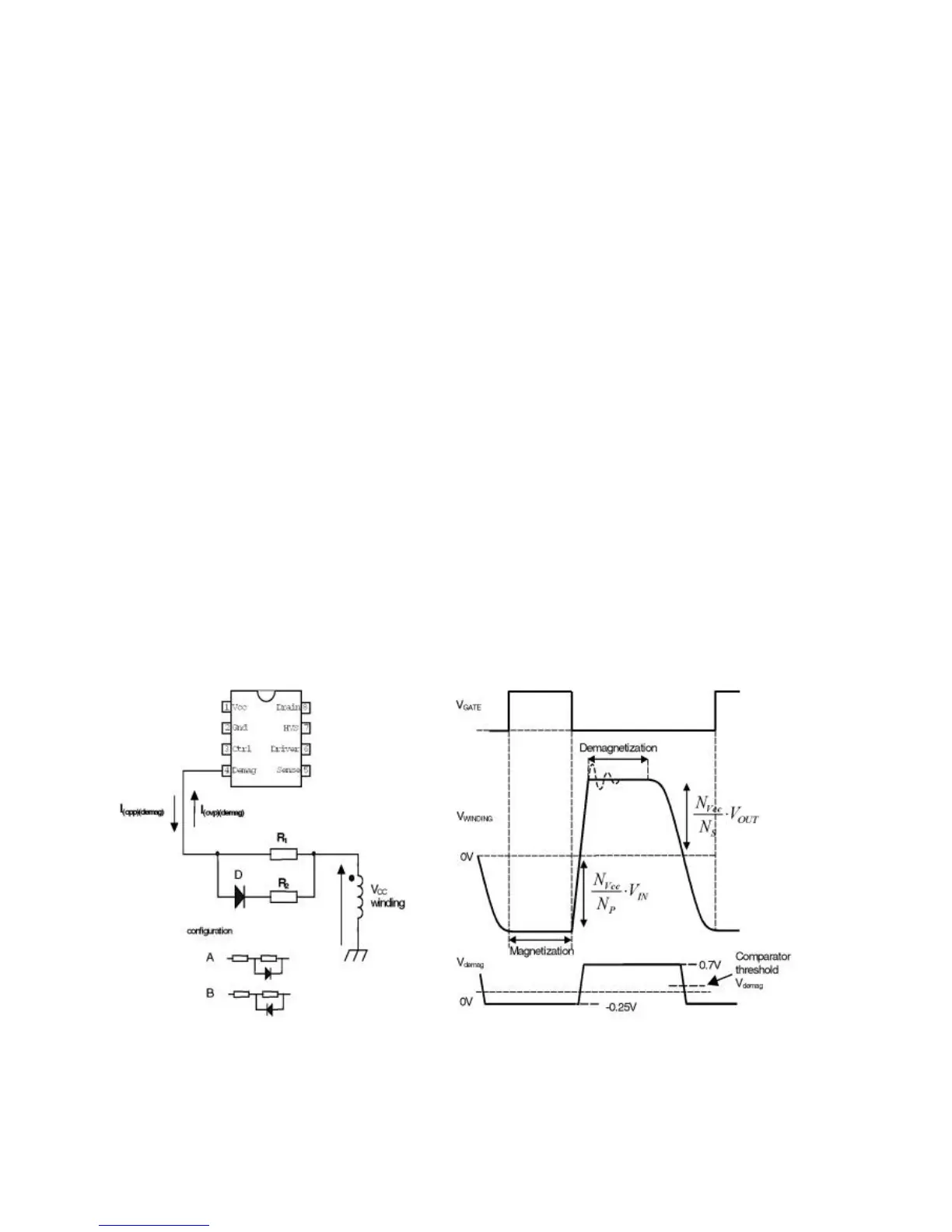 The demag(netization) sense is realized by an internal circuit that guards the voltage