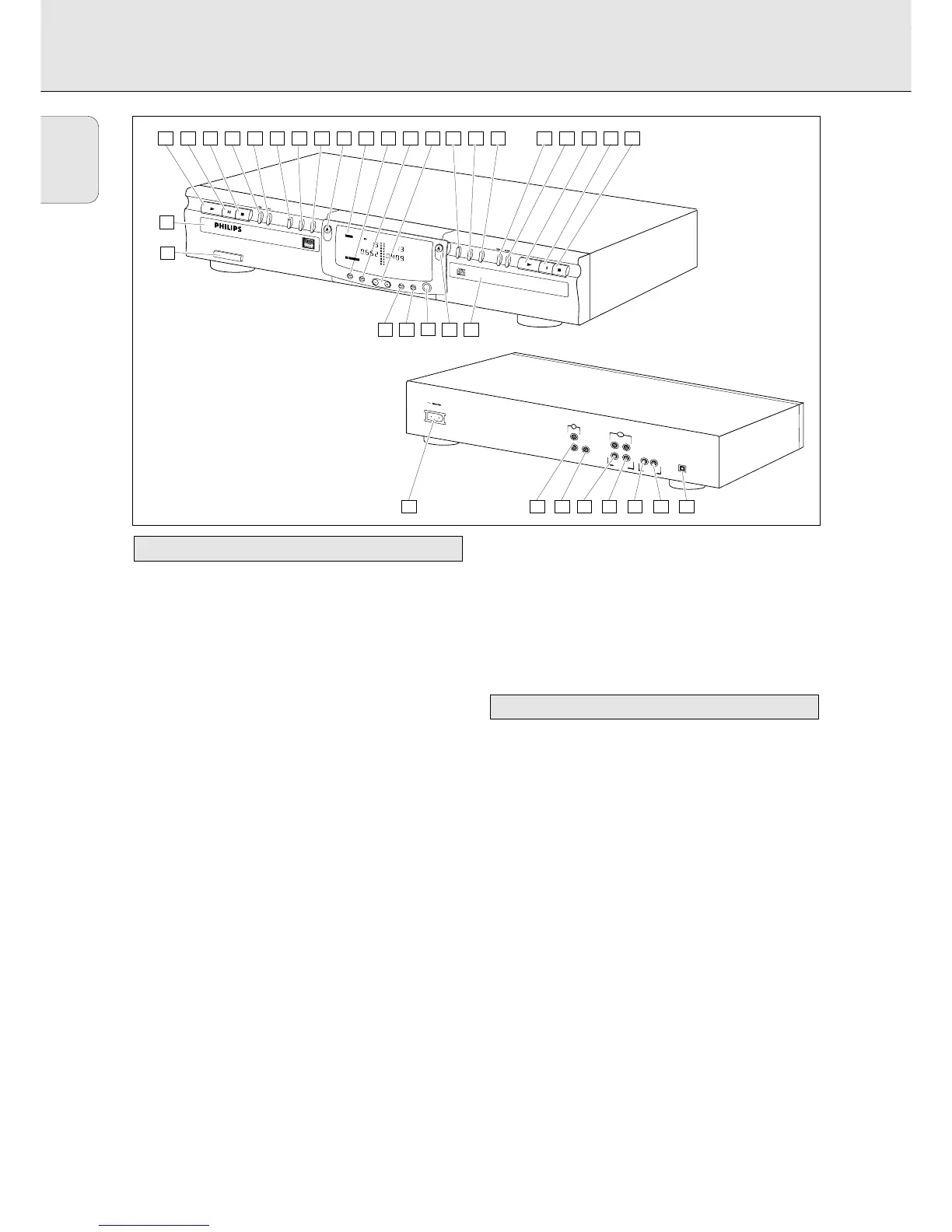 1 ON/OFF . . . . . . . . . . . turn the CD recorder/player ON and OFF