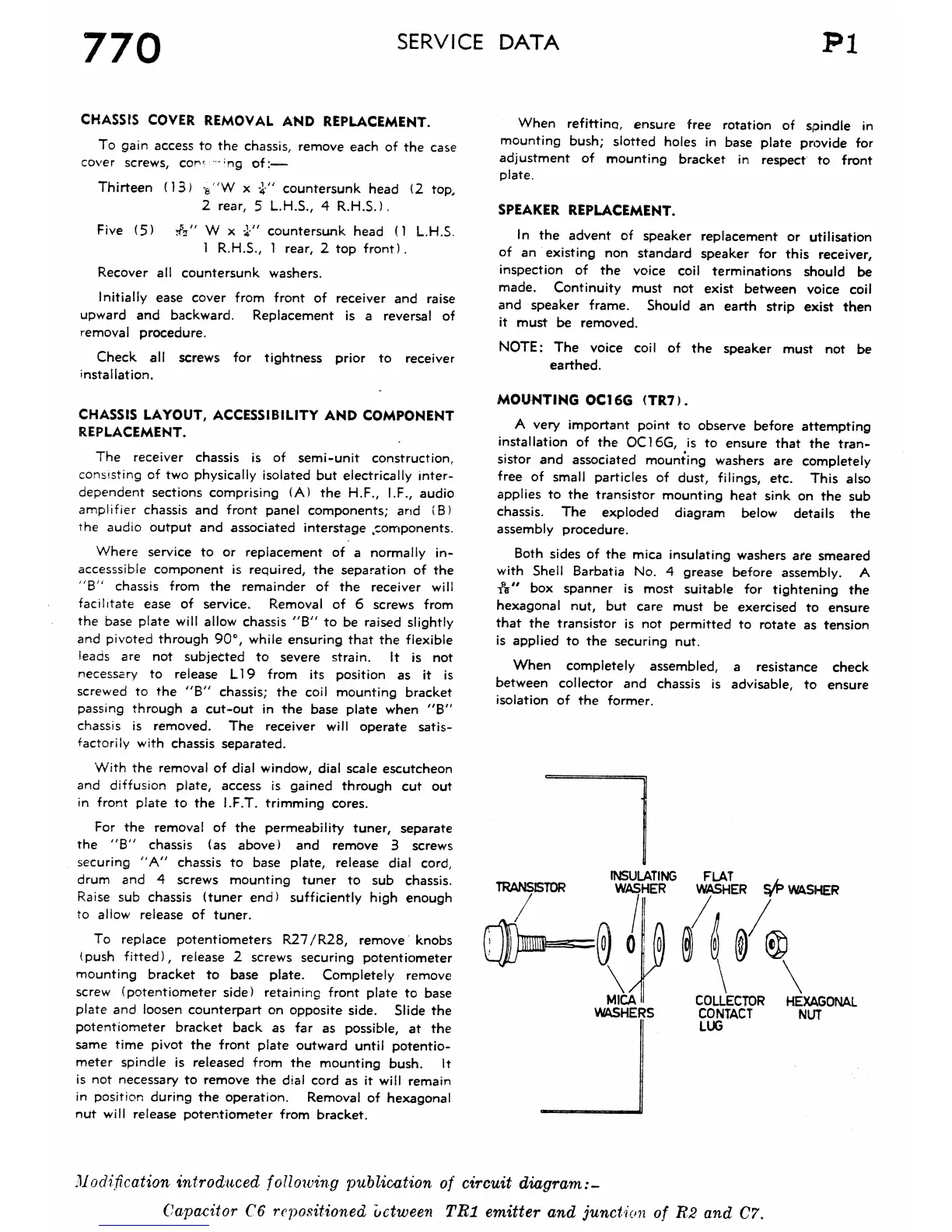 Philips 770 - Chassis Cover Removal and Replacement; Chassis Layout, Accessibility and Component Replacement; Speaker Replacement; Mounting OC16 G (TR7)