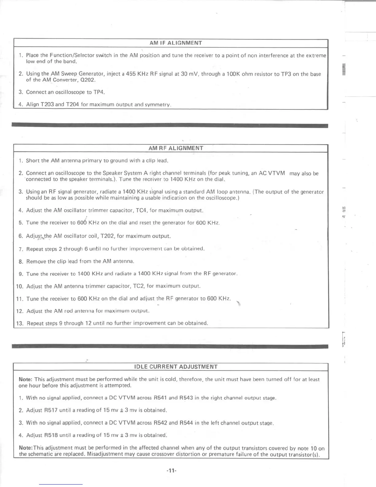 Philips 7841 - AM if Alignment; AM RF Alignment; Idle Current Adjustment