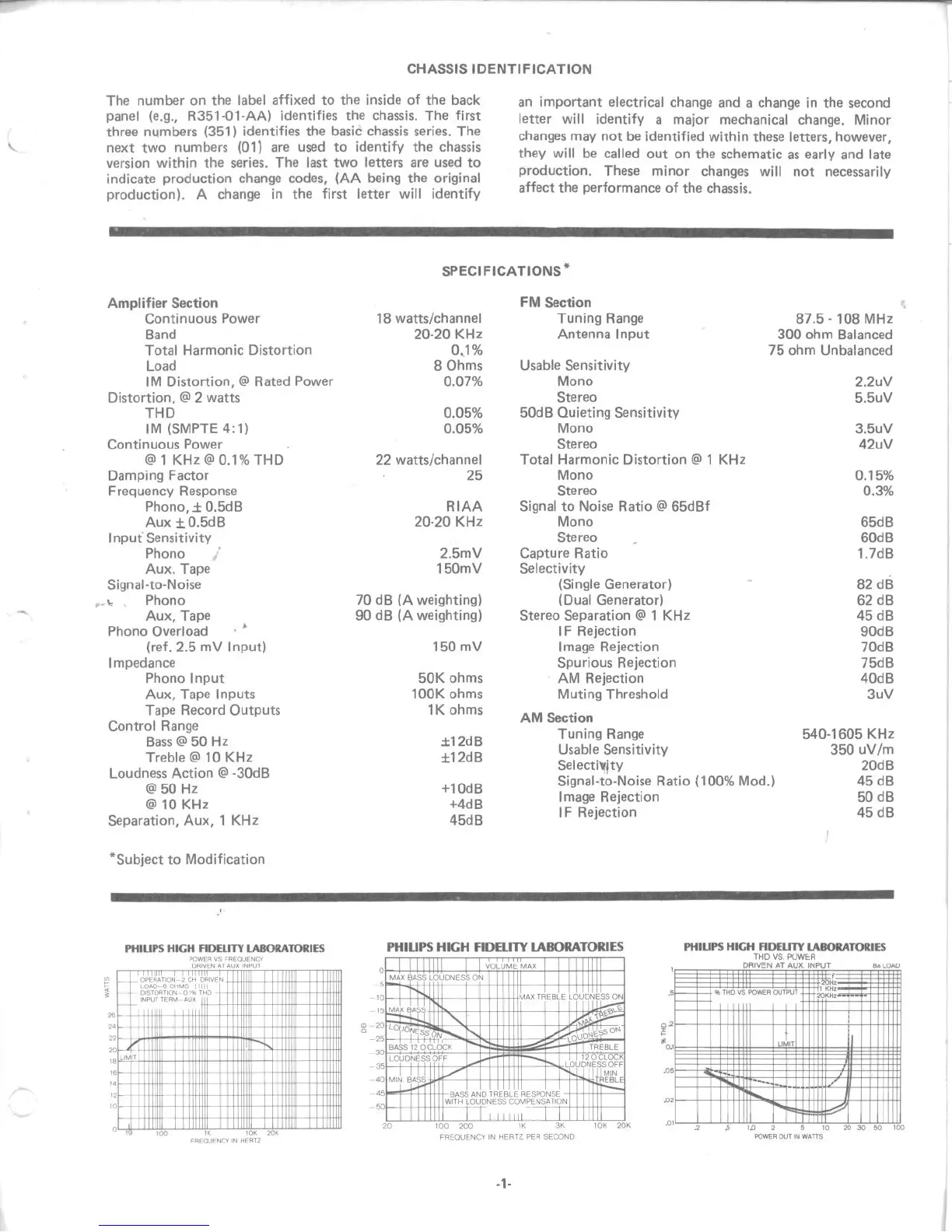 Philips 7841 - Chassis Identification; Specifications