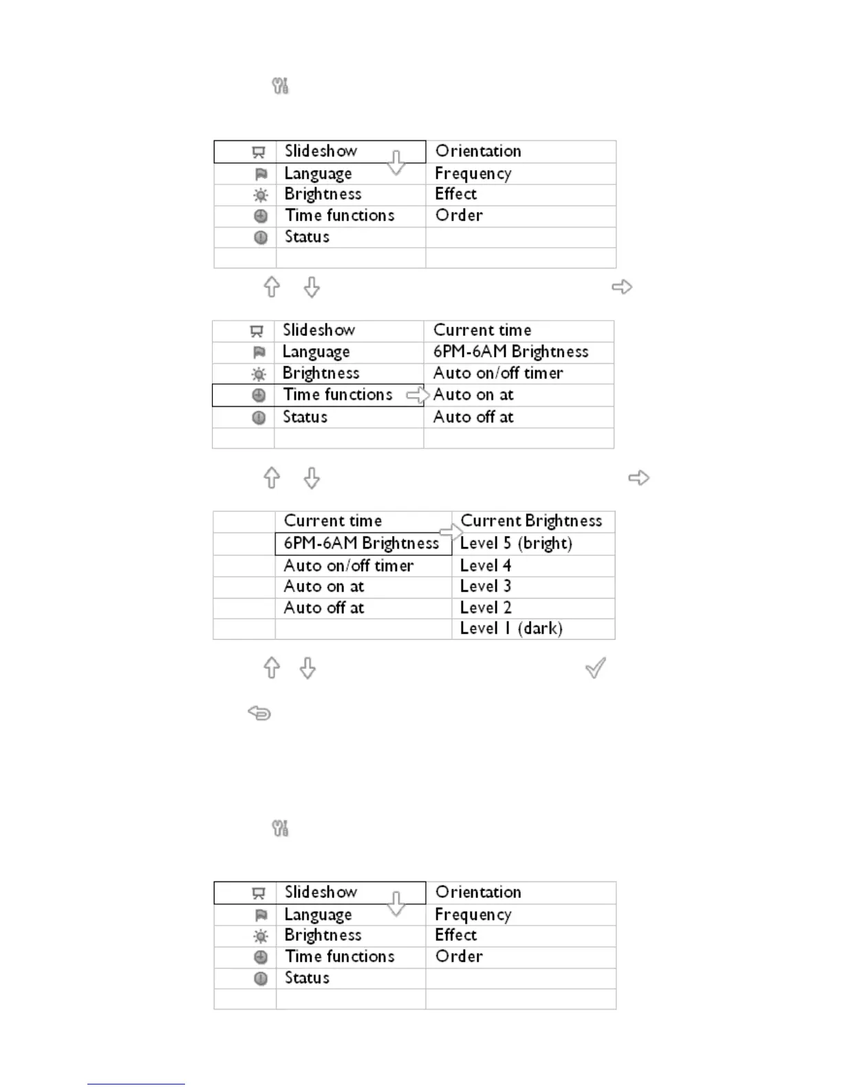 Use the or key to highlight 6PM-6AM Brightness and press the key to select.