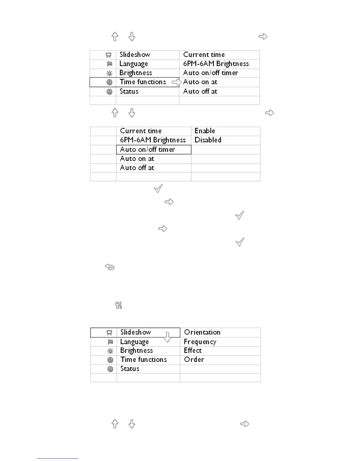 Set the time to turn on PhotoFrame™ everyday and press to confirm.