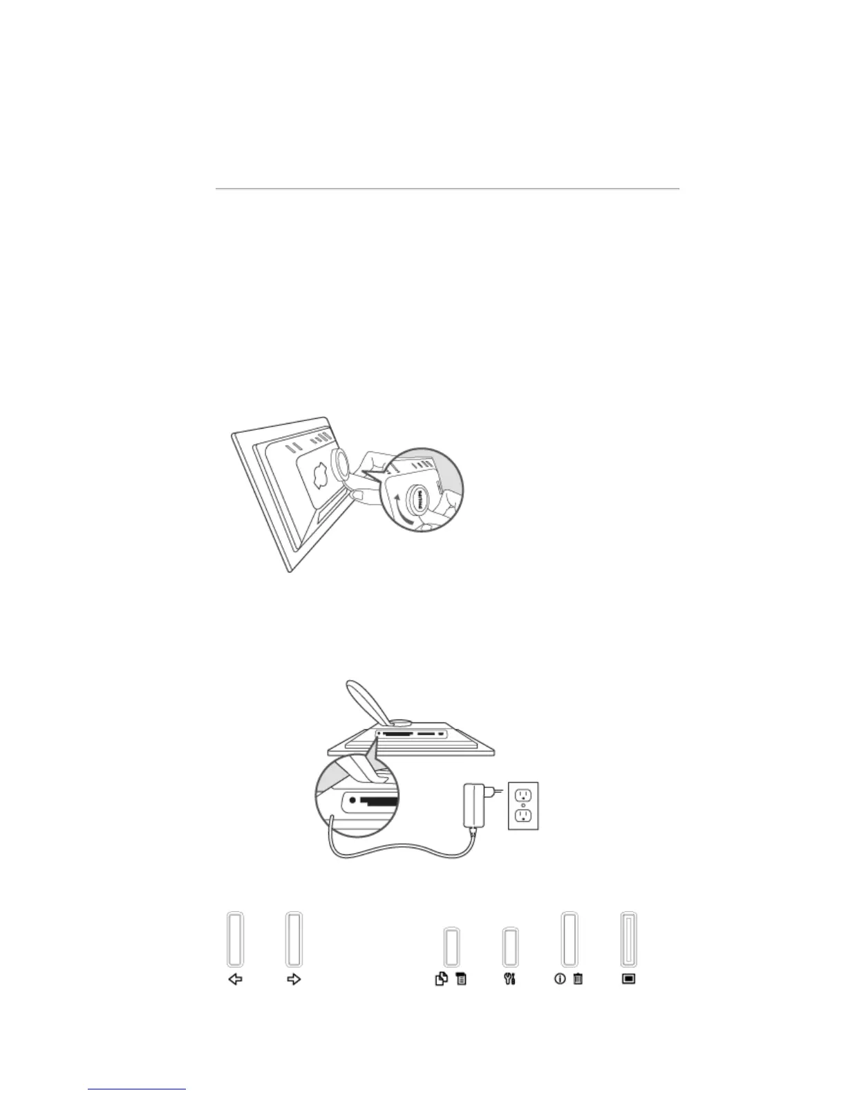 Use your PhotoFrame™ by pressing the control keys in the back.
