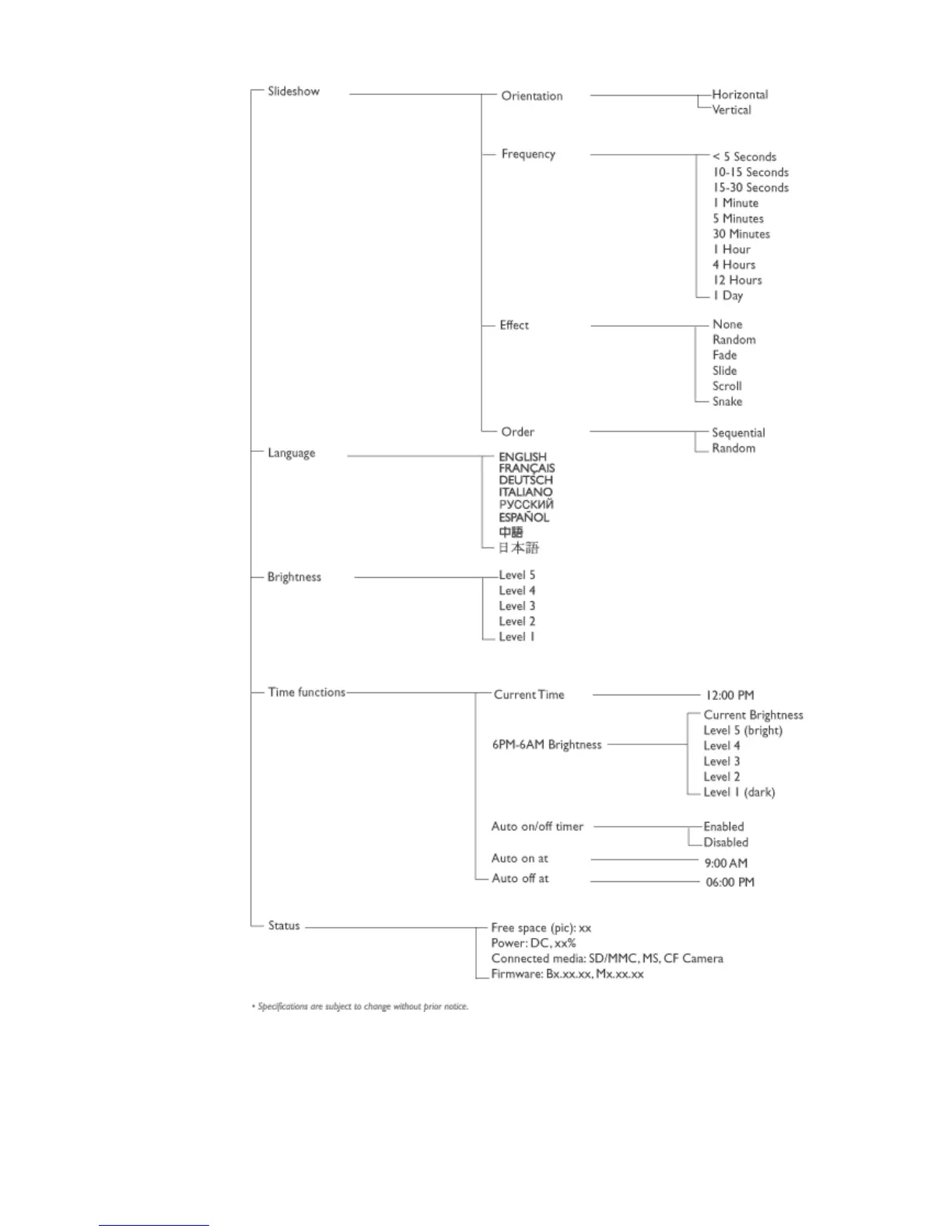 Understøttet billedformat op til 12M pixels, JPEG billeder efter EXIF and DCF standard