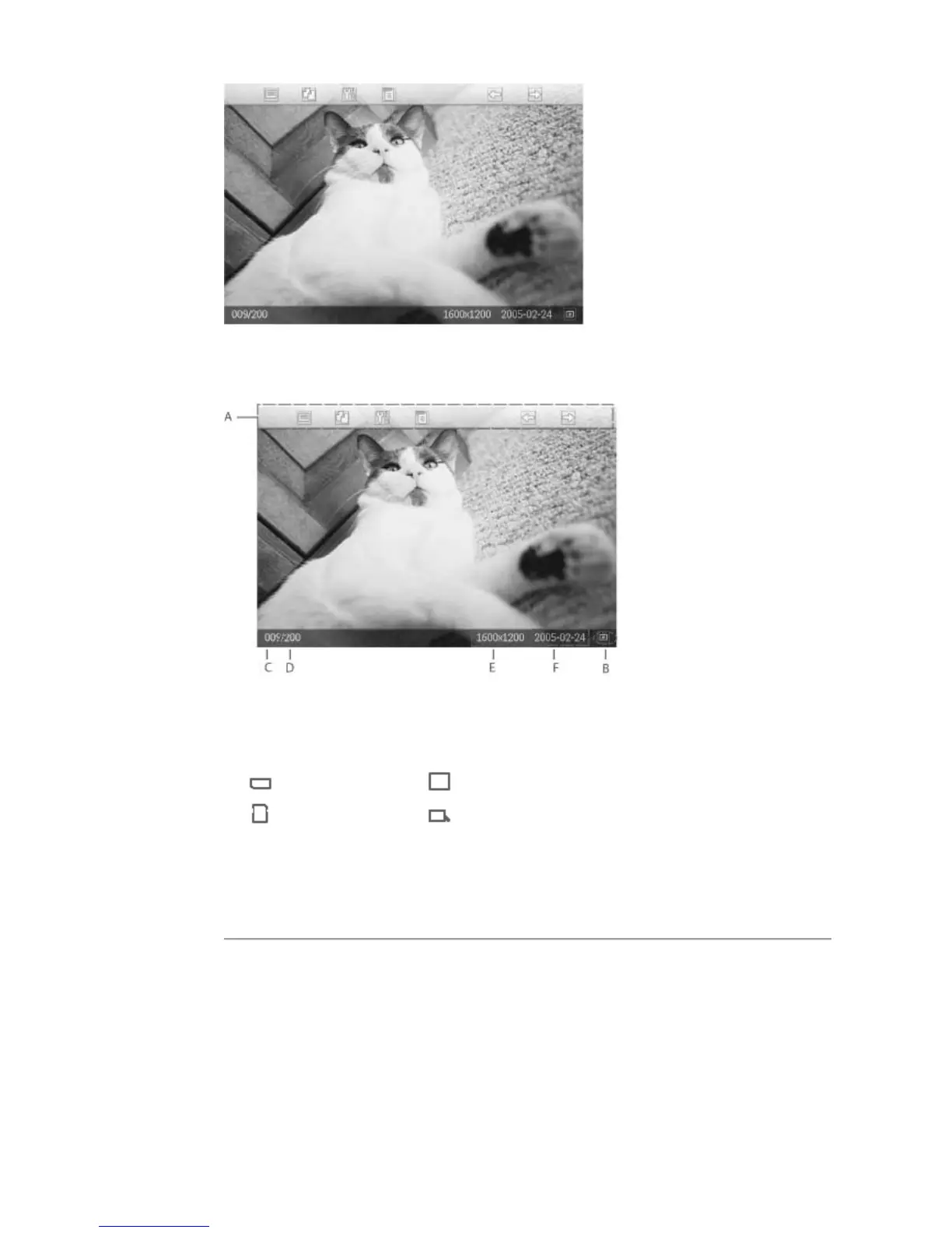 Hver ikon repræsenterer funktionen på den tilsvarende tast på bagsiden af fotoskærmen.