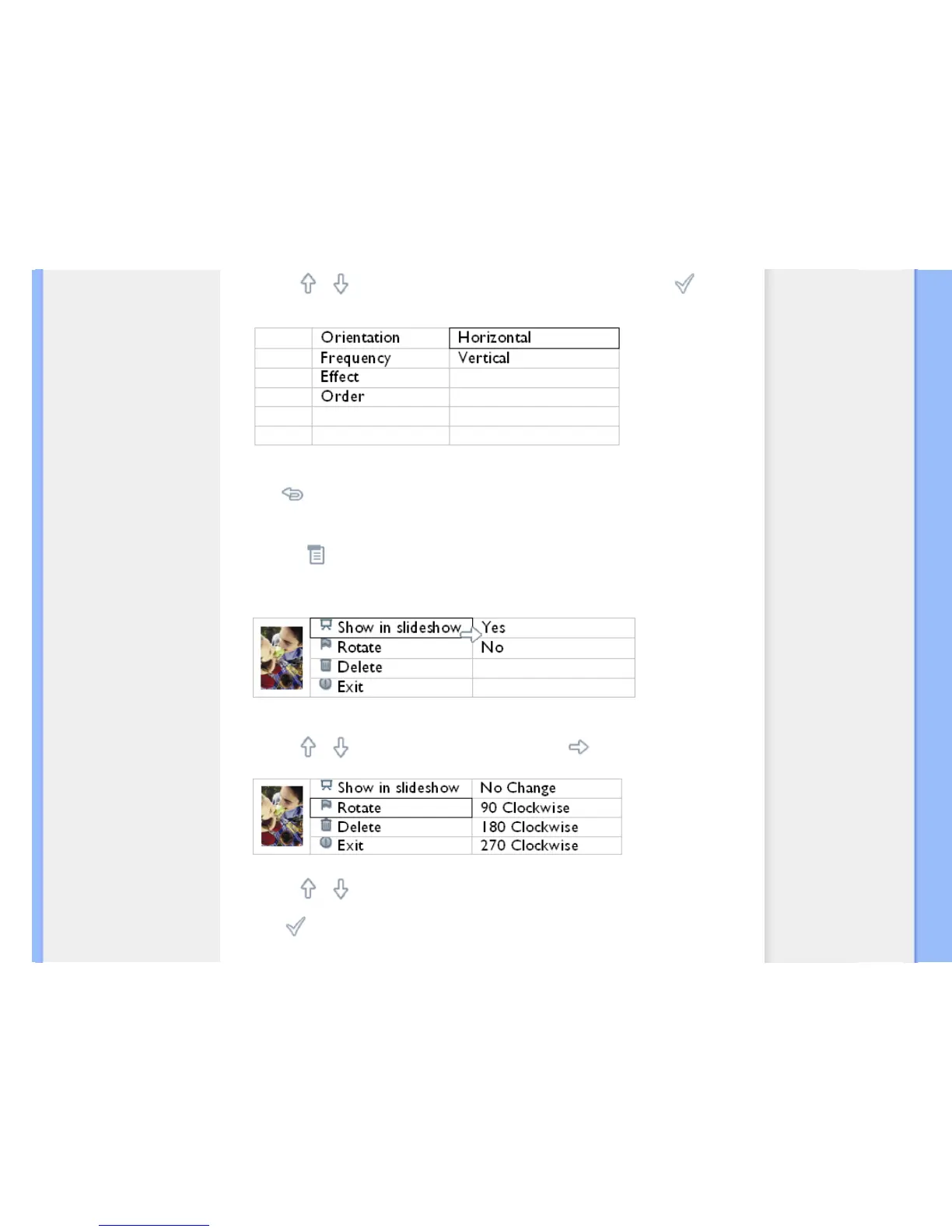 Use the or key to move the highlight among different rotation angles until the