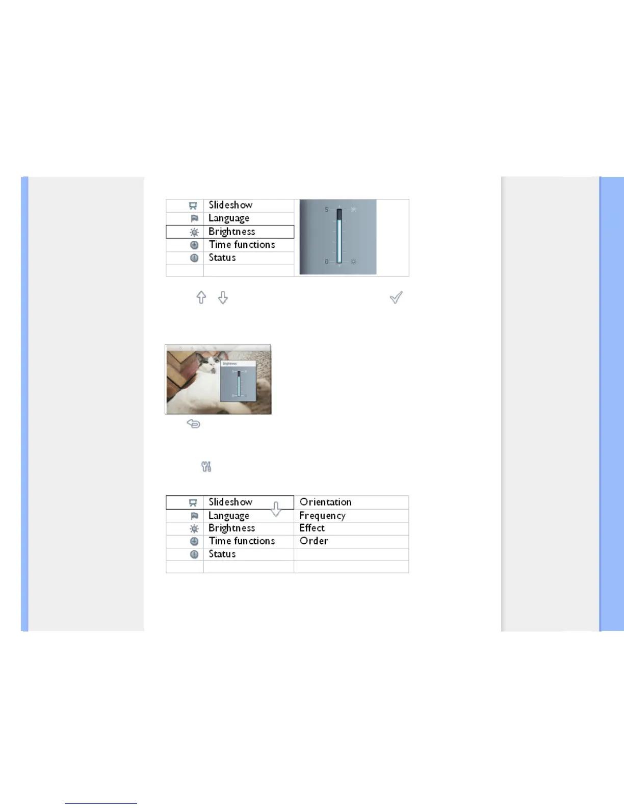 Use the or key to modify the brightness level and press to confirm and exit