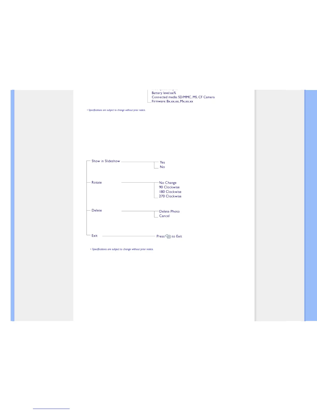 Display mode Automatic slideshow, Full-Screen browse, Thumbnail browse