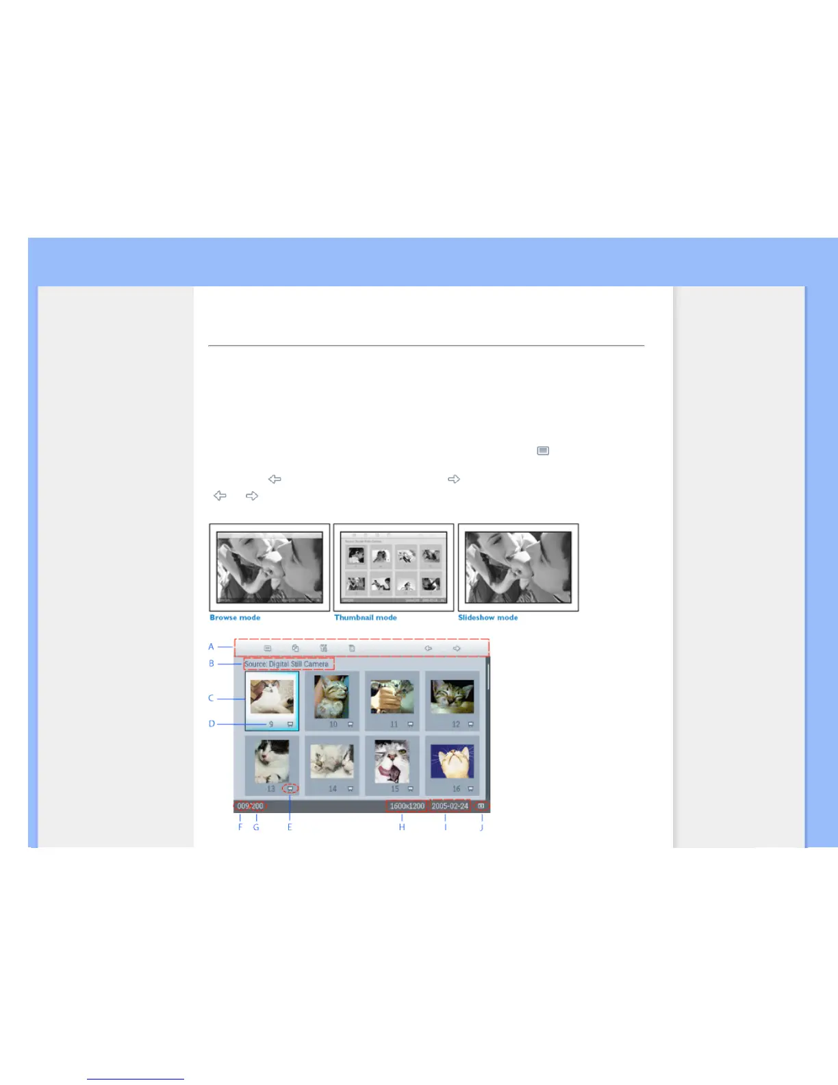 from the left on the rear of Photo Display) to toggle among the three viewing