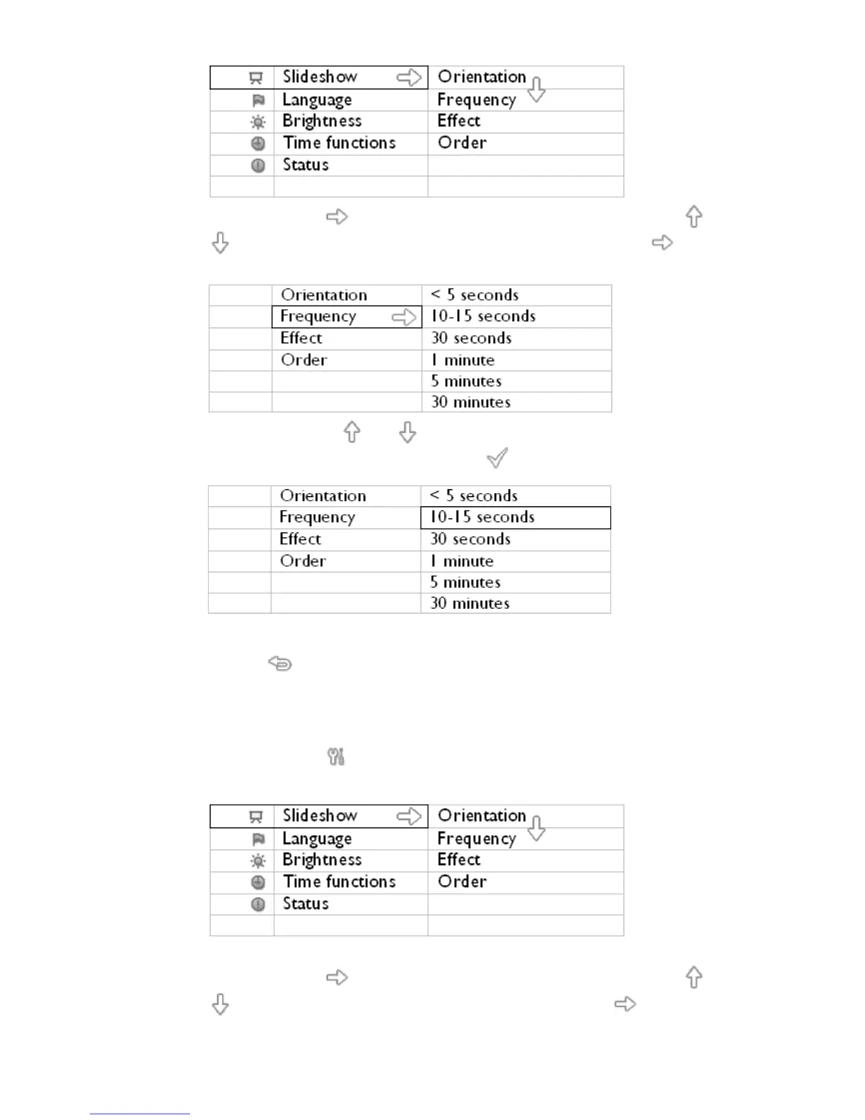 Нажмите клавишу для выбора меню Слайд-шоу и нажимайте клавишу или