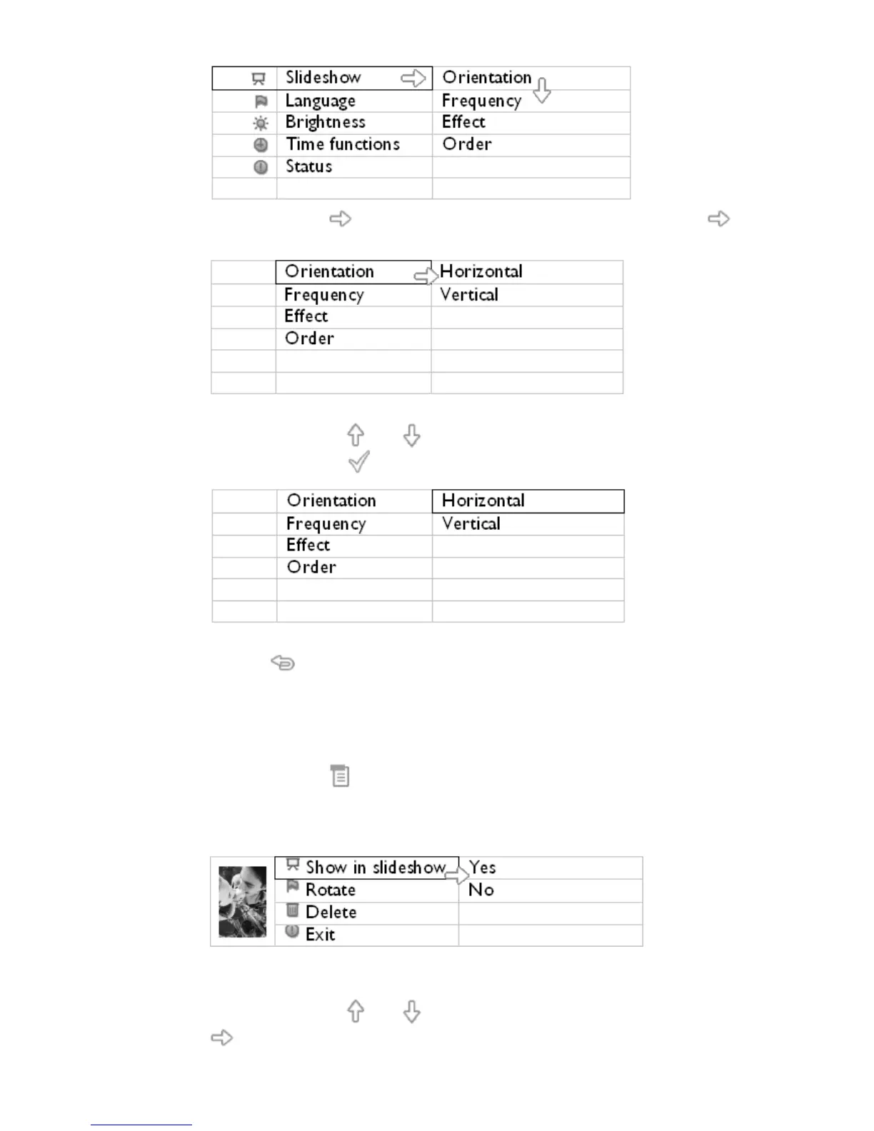 Нажмите клавишу для выбора меню Слайд-шоу, снова нажмите клавишу