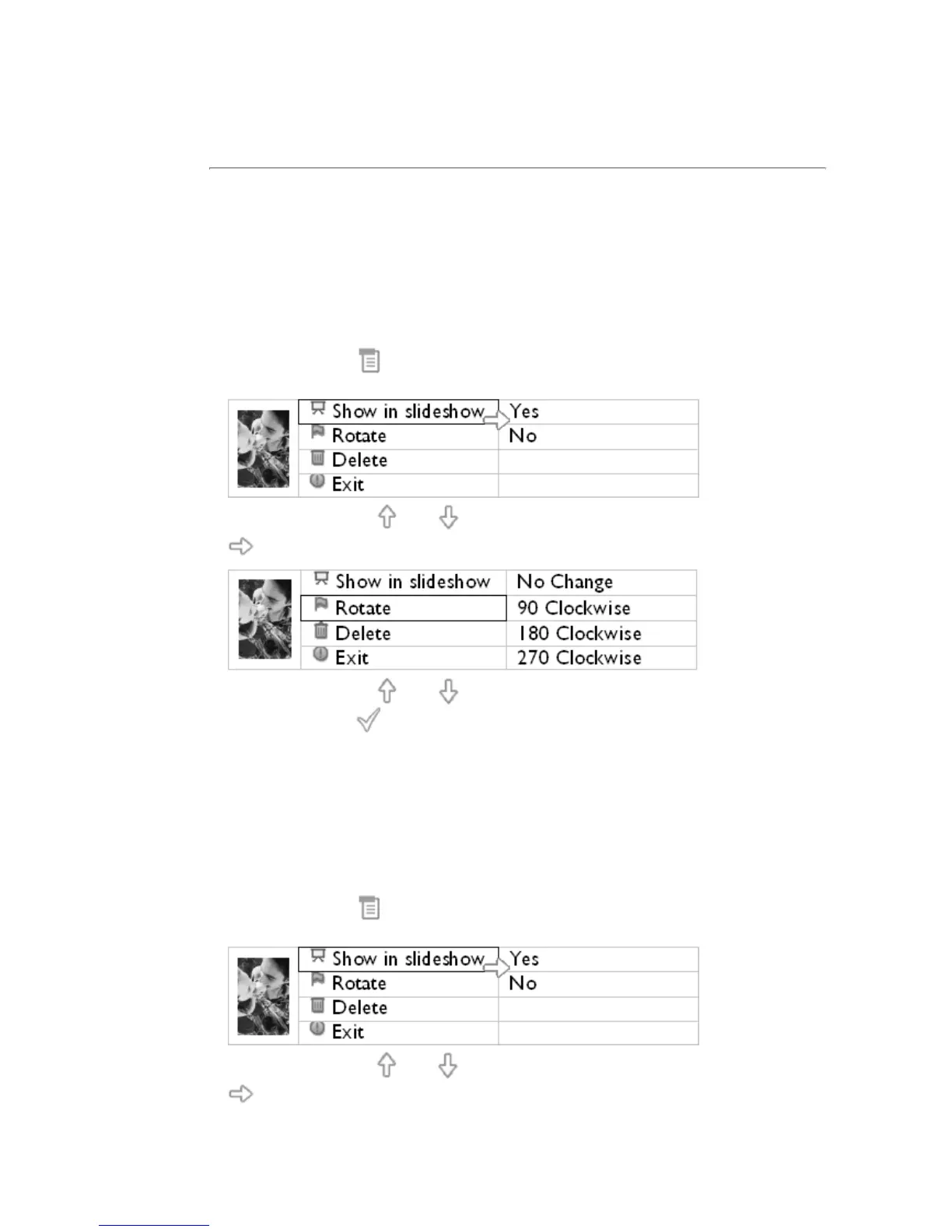 Нажимайте клавиши или для выделения нужной ориентации фотографии и
