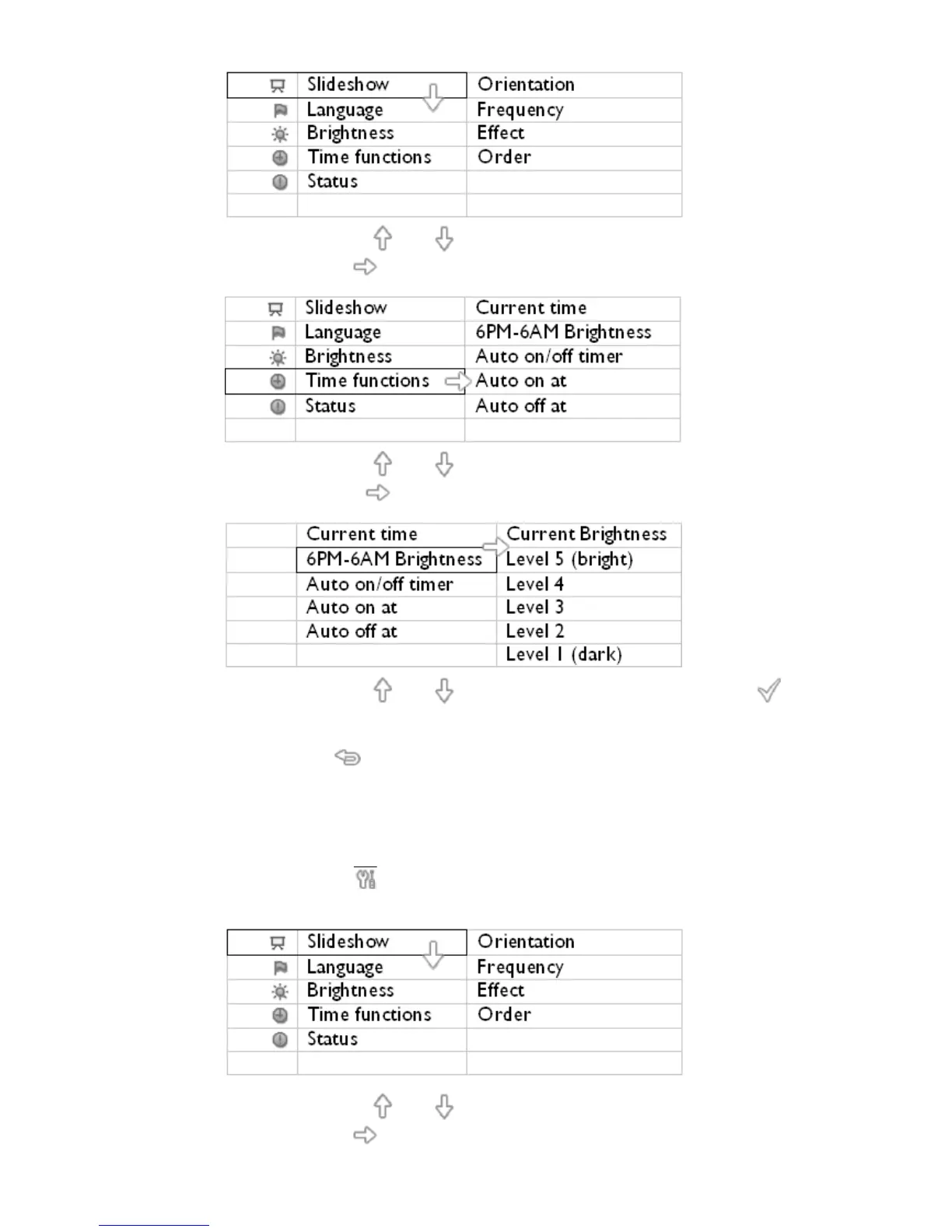 Нажимайте клавишу или для изменения уровня яркости и нажмите для