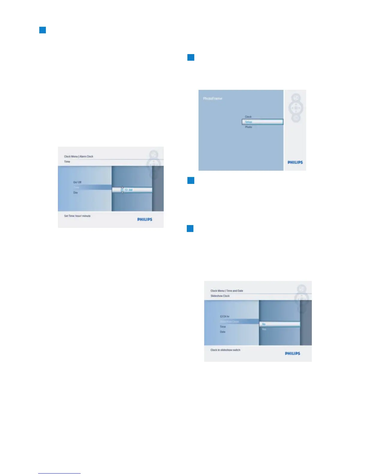 /Slideshow Clock and press e Play/OK