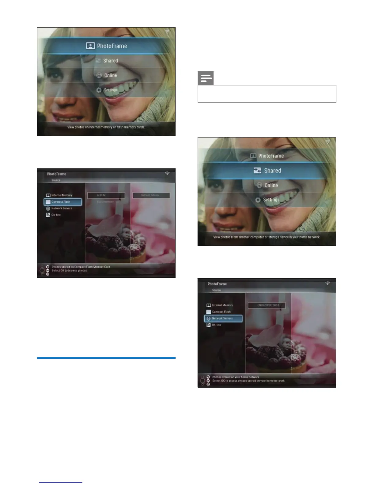 Only JPEG photos can be displayed on the PhotoFrame.•