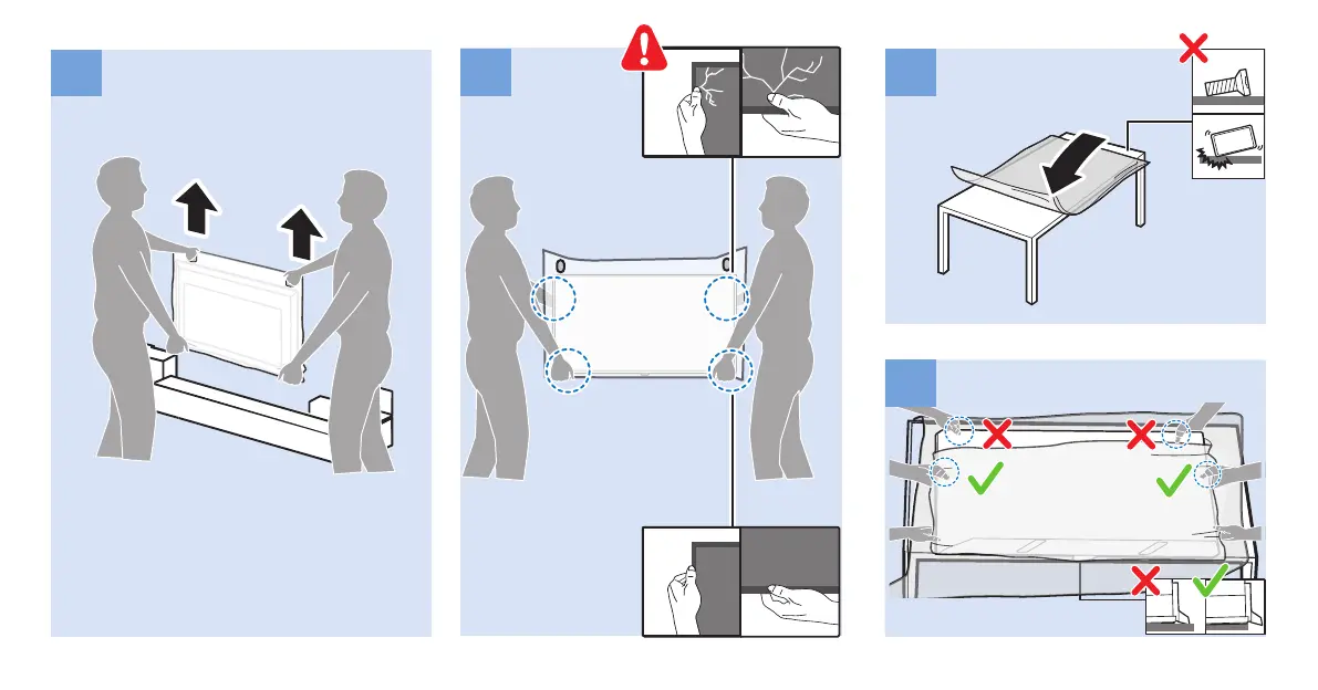 Philips 9002 Series - TV Handling and Placement for Setup; Safe Handling and Positioning (Steps 1-3)